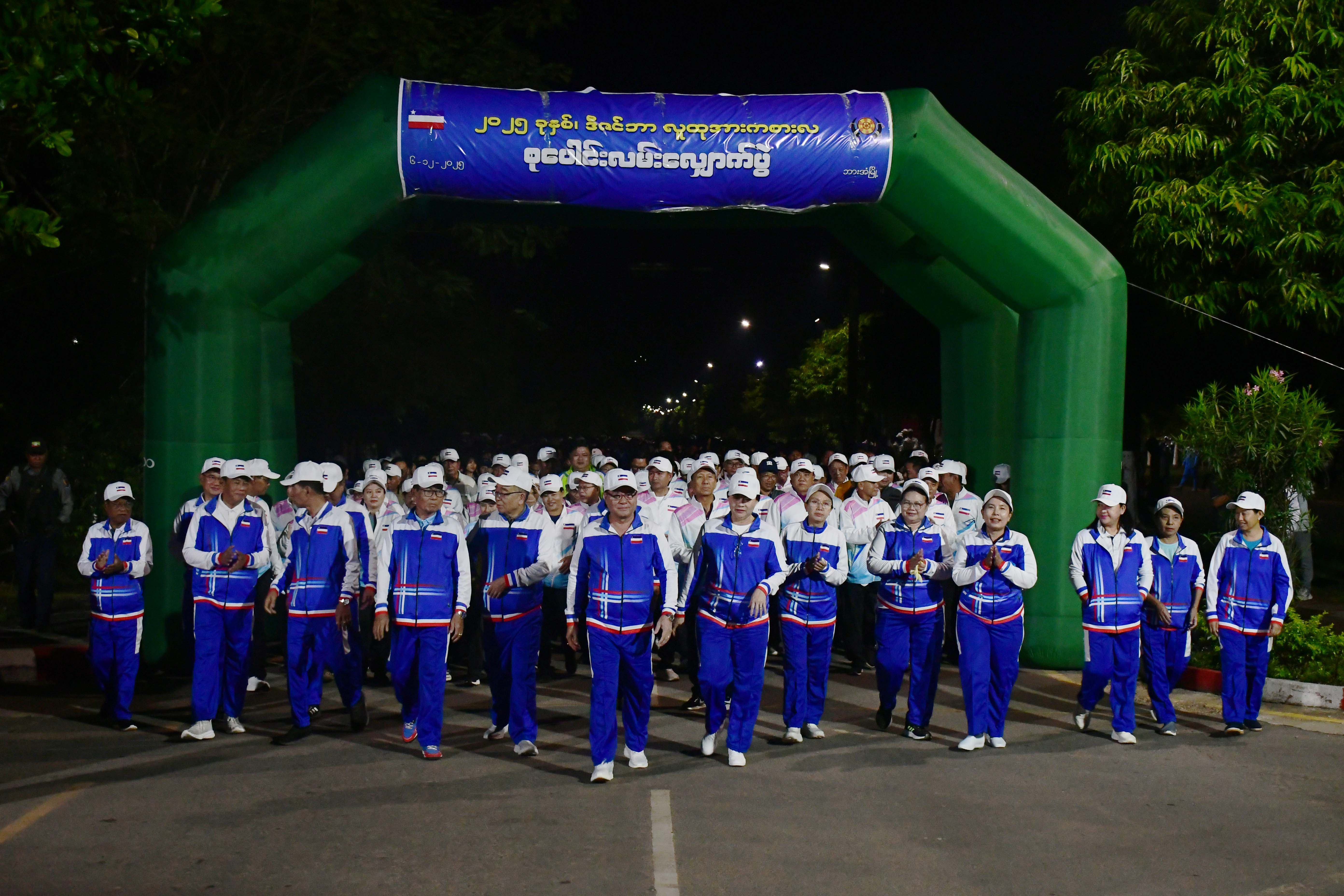 ကိုယ်လက်လှုပ်ရှားအားကစား ကျန်းမာရေးလေ့ကျင့်ခန်းများဆောင်ရွက်ခြင်းဖြင့် တစ်ဦးတစ်ယောက်ချင်းစီမှ သည် တစ်မျိုးသားလုံးကျန်းမာကြံ့ခိုင်လာစေရေး ၂၀၂၅ ခုနှစ် ဒီဇင်ဘာလူထုအားကစားလ စုပေါင်းလူထုလမ်းလျှောက်ပွဲ ကို ယနေ့နံနက် ၅ နာရီခွဲက ဘားအံမြို့၊ အမှတ်(၄)ရပ်ကွက်၊ ဝန်ကြီးများအိမ်ရာရှေ့တွင် စုရပ်ထား၍ကျင်းပရာ ပြည်နယ် ဝန်ကြီးချုပ်ဦးစောမြင့်ဦး၊ တာဝန်ရှိသူများ ပါဝင်ဆင်နွှဲခဲ့ကြသည်။