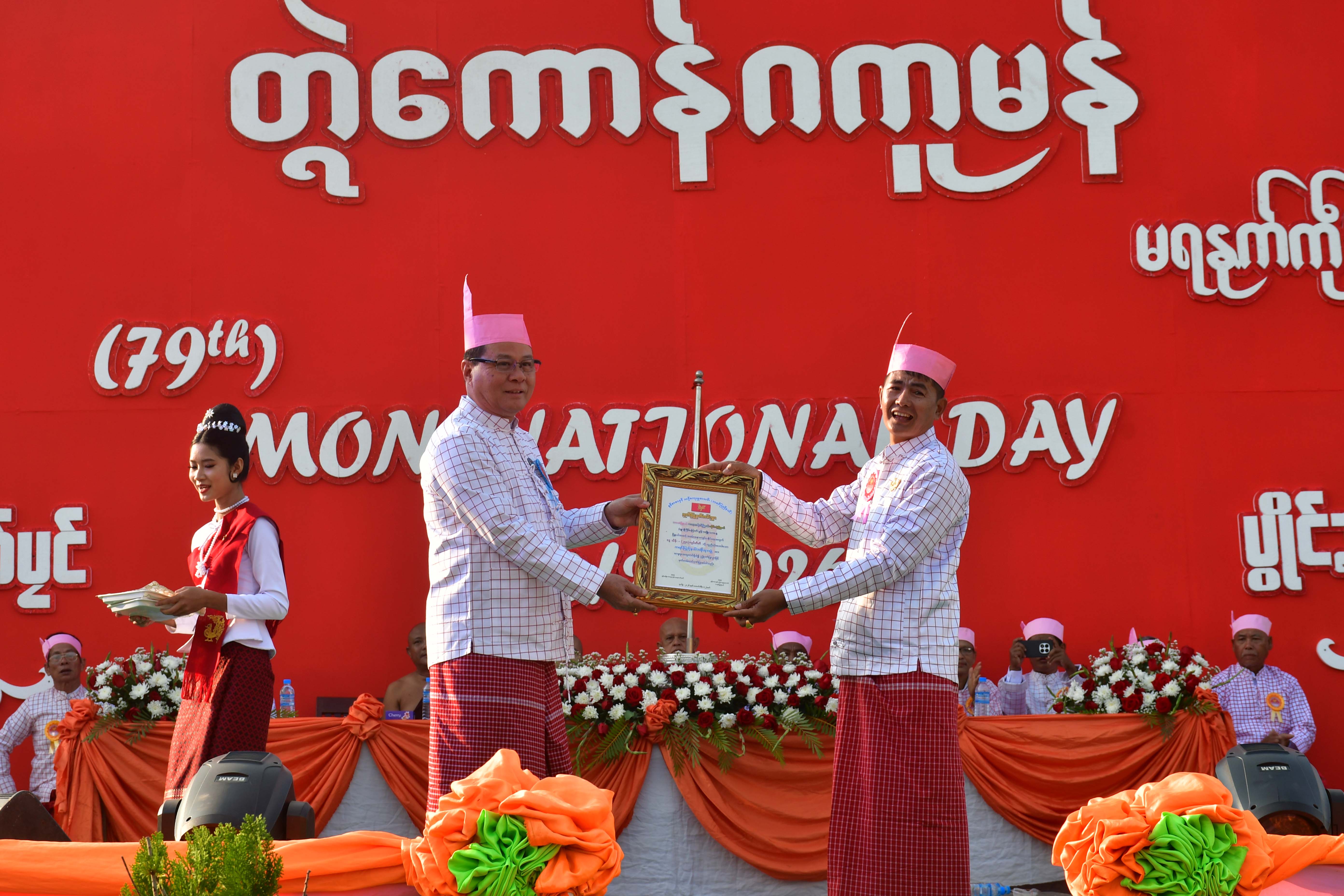 ယင်းနောက် ပြည်နယ်ဝန်ကြီးချုပ်က မွန်အမျိုးသားနေ့အခမ်းအနားအတွက် ၂၅၀၀၀၀၀ဝိ/-(နှစ်ရာ့ငါးဆယ်သိန်း) ကို ချီးမြှင့်ပေးအပ်ပြီး သဘာပတိအဖွဲ့ဝင်တစ်ဦးက အမှာစကားပြောကြားကာ ကျင်းပရေးကော်မတီဥက္ကဋ္ဌက ကျေးဇူးတင် စကားပြောကြား၍ မွန်တိုင်းရင်းသားလူငယ်မောင်မယ်များက မွန်အမျိုးသားနေ့ မြေစိုက်ပိုစတာအကြောင်းကို မွန်ဘာသာ၊ မြန်မာဘာသာ၊ အင်္ဂလိပ်ဘာသာတို့ဖြင့် ဖတ်ကြားတင်ပြကြပြီး (၇၉)ကြိမ်မြောက် မွန်အမျိုးသားနေ့ အခမ်းအနားကို မွန်အမျိုးသားသီချင်းဖြင့် စုပေါင်းသီဆိုရုပ်သိမ်းခဲ့ကြပါသည်။