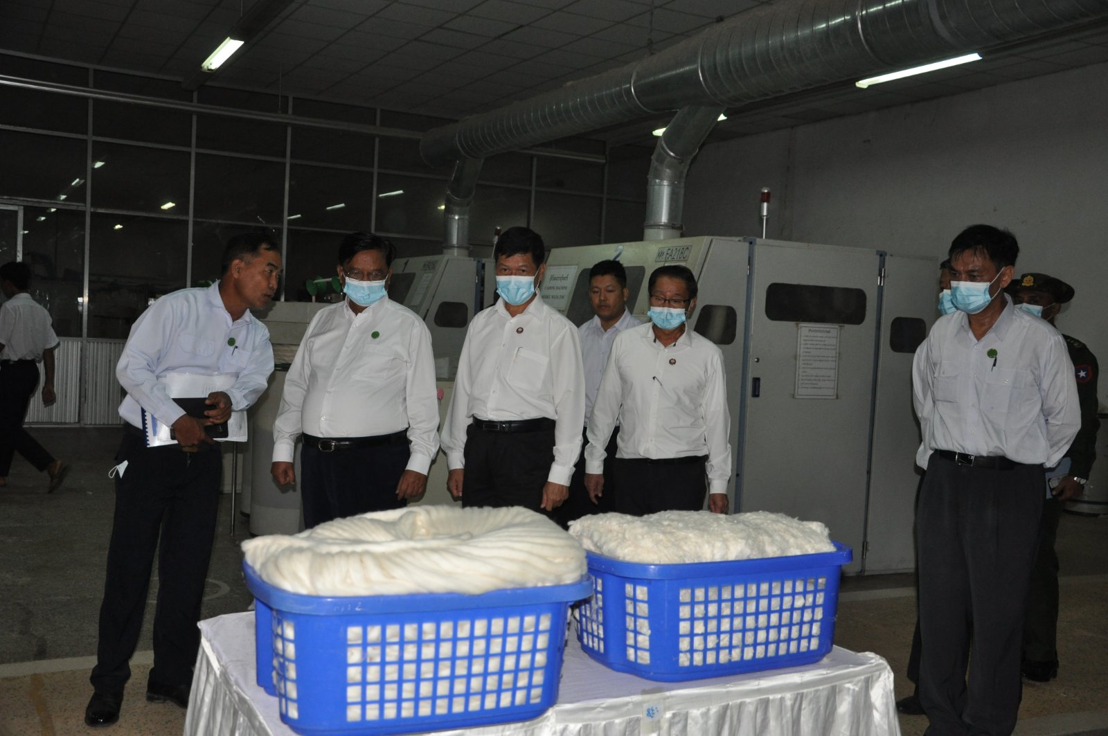 ထို့နောက် မန္တလေးတိုင်းဒေသကြီးအစိုးရအဖွဲ့ ဝန်ကြီးချုပ်က ၂/၈၀ ချည်များ ထုတ်လုပ်ခြင်းလုပ်ငန်းသည် ပြည်ပသွင်းကုန်အစားထိုးလုပ်ငန်းဖြစ်၍ အောင်မြင်အောင် ကြိုးစားဆောင်ရွက်ရမည်ဖြစ်ကြောင်း၊ တိုင်းဒေသကြီးအတွင်းရှိ ဝန်ကြီးဌာနများ၏ လိုအပ်ချက်၊ အခက်အခဲများရှိပါက ကူညီဖြေရှင်းဆောင်ရွက်ပေးသွားမည်ဖြစ်ကြောင်း လမ်းညွှန်မှာကြားပြီး ပြည်ထောင်စုဝန်ကြီးနှင့် မန္တလေးတိုင်းဒေသကြီးအစိုးရအဖွဲ့ ဝန်ကြီးချုပ်တို့သည် စက်ရုံအတွင်း ၂/၈၀ ချည်များစမ်းသပ်ထုတ်လုပ်နေသည့် လုပ်ငန်းစဉ်အဆင့်ဆင့်နှင့် စမ်းသပ်ထုတ်လုပ်ထားရှိသည့် ၂/၈၀ ချည်များအား အရည်အသွေး စမ်းသပ်စစ်ဆေးနေမှုအခြေအနေတို့ကို လှည့်လည်ကြည့်ရှုစစ်ဆေးသည်။