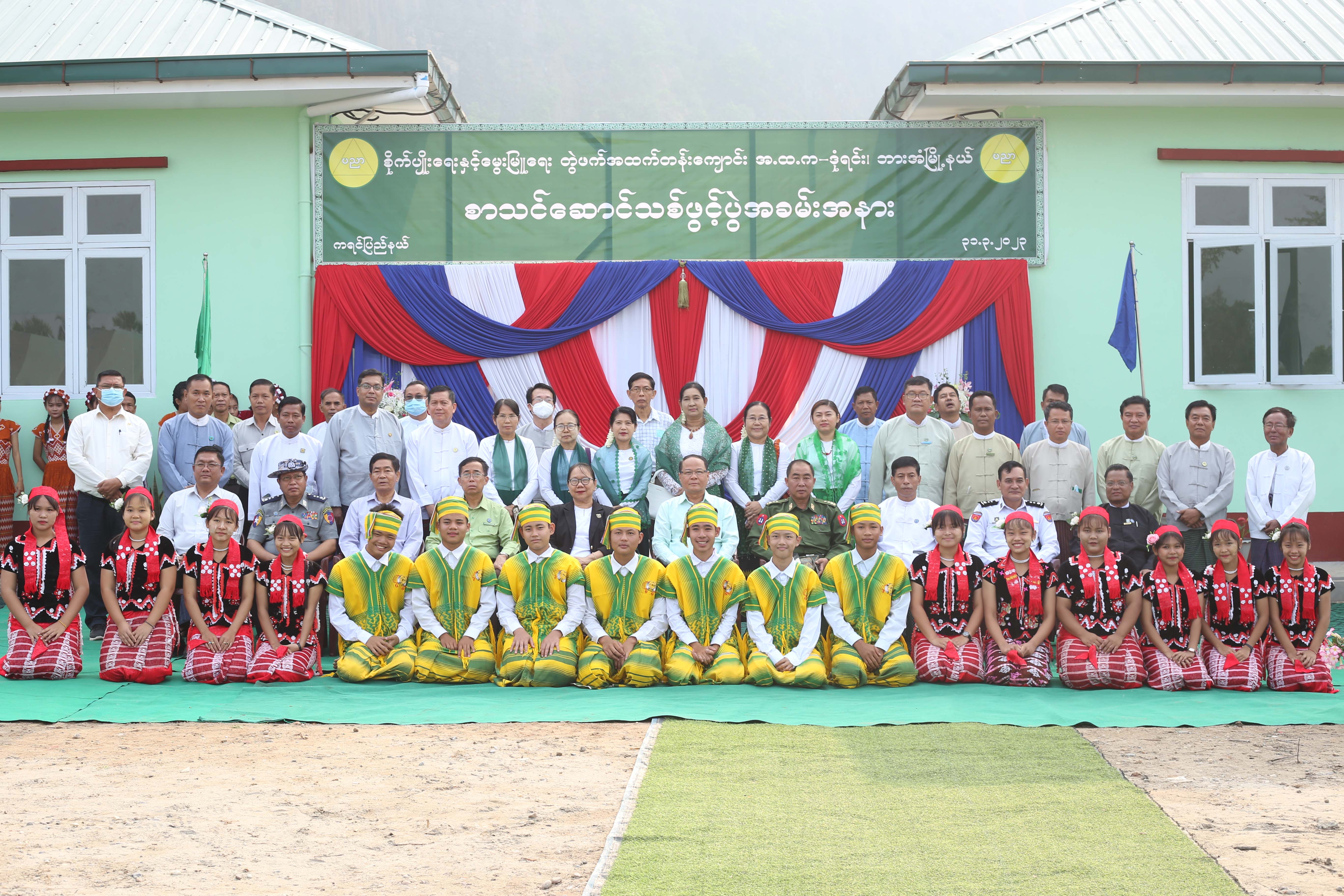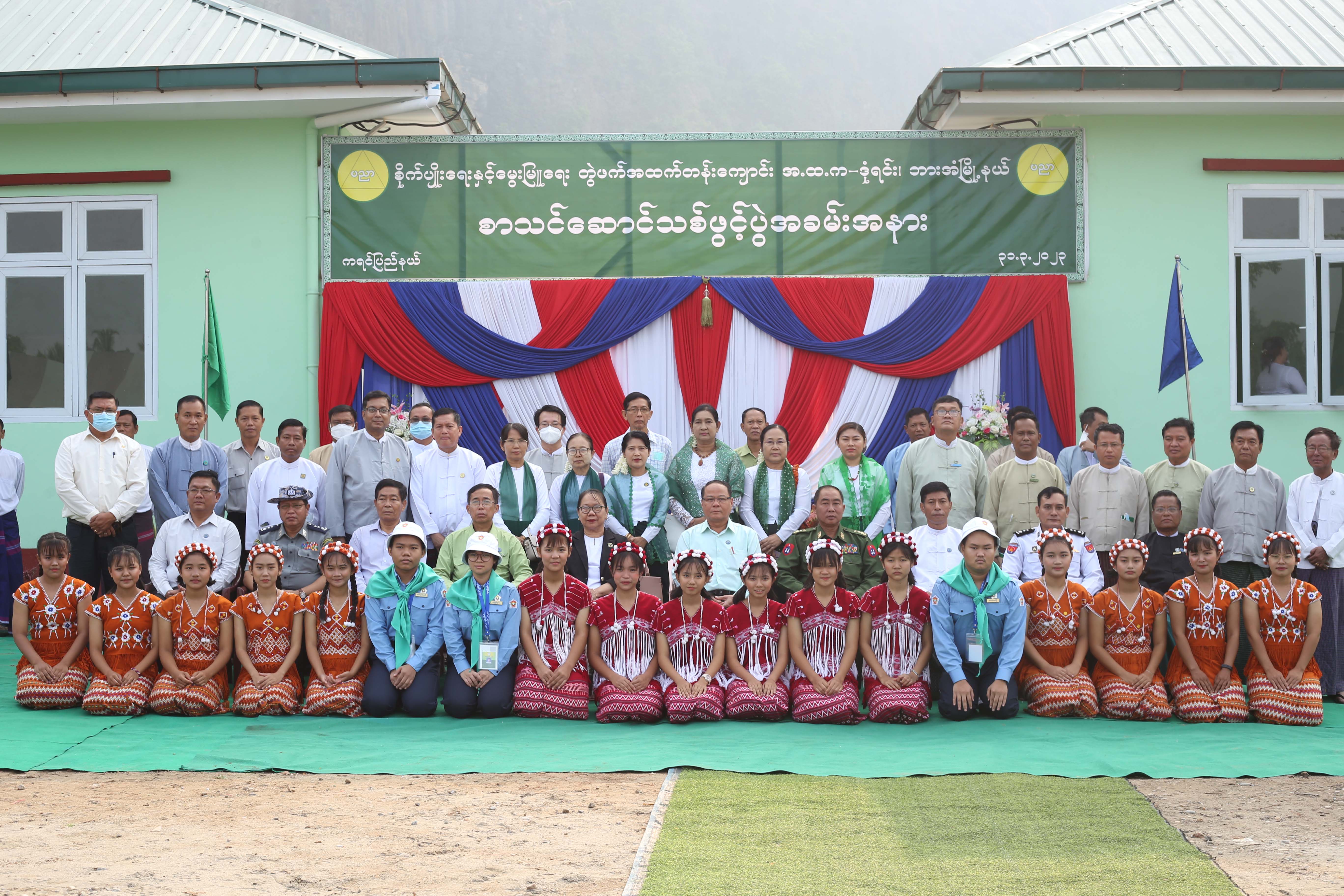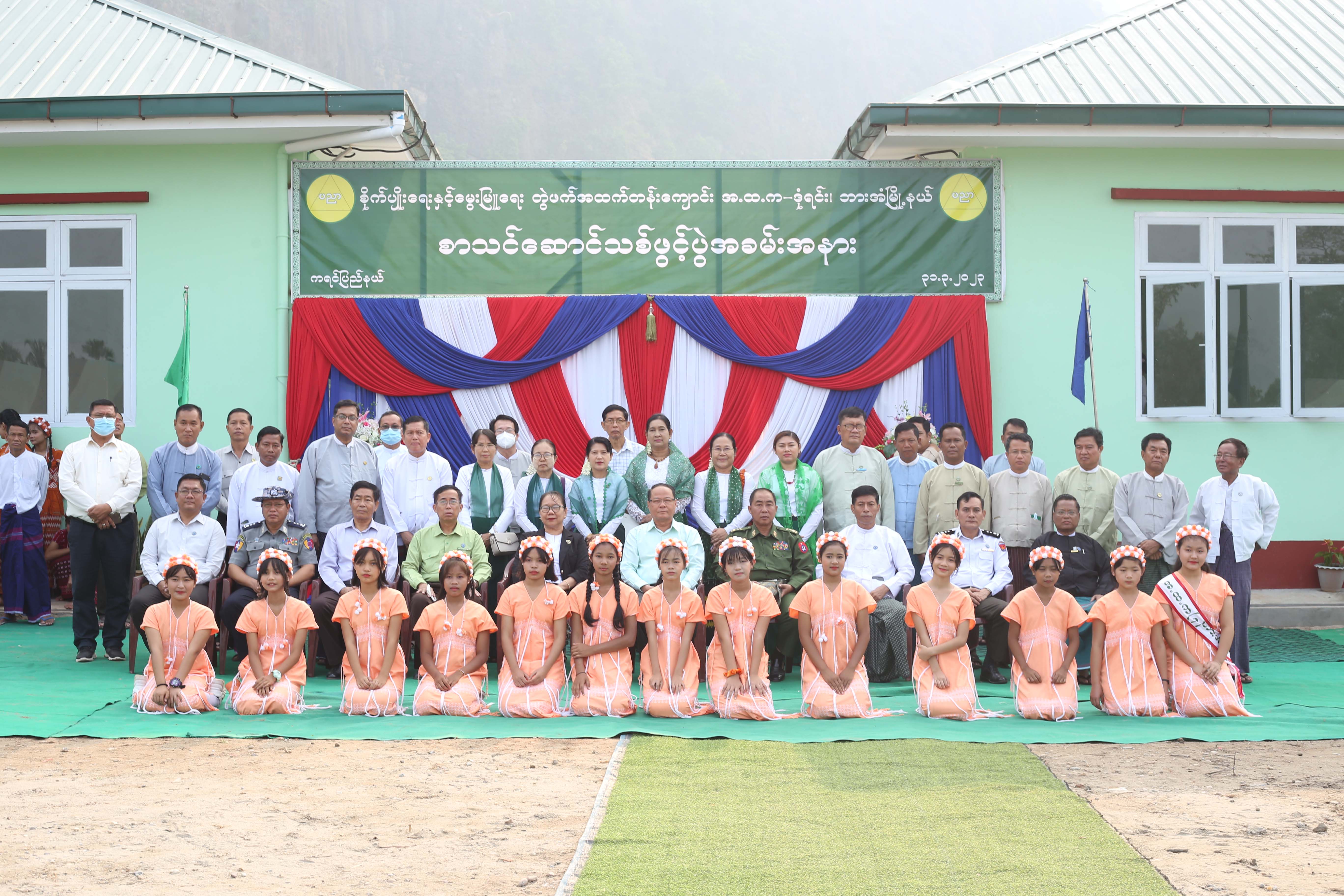 ဦးစွာ ပြည်နယ်ဝန်ကြီးချုပ်ဦးစောမြင့်ဦး၊ ပြည်နယ်တရားလွှတ်တော်တရားသူကြီးချုပ်ဒေါ်ခင်ဆွေထွန်း၊ ပြည်နယ်အစိုးရအဖွဲ့ဝင်များက ကျောင်းဆောင်သစ်အားဖဲကြိုးဖြတ်ဖွင့်လှစ်ပေးကြကာ ကျောင်းဆောင်သစ်အား လှည့်လည်ကြည့်ရှုစစ်ဆေးခဲ့ကြသည်။