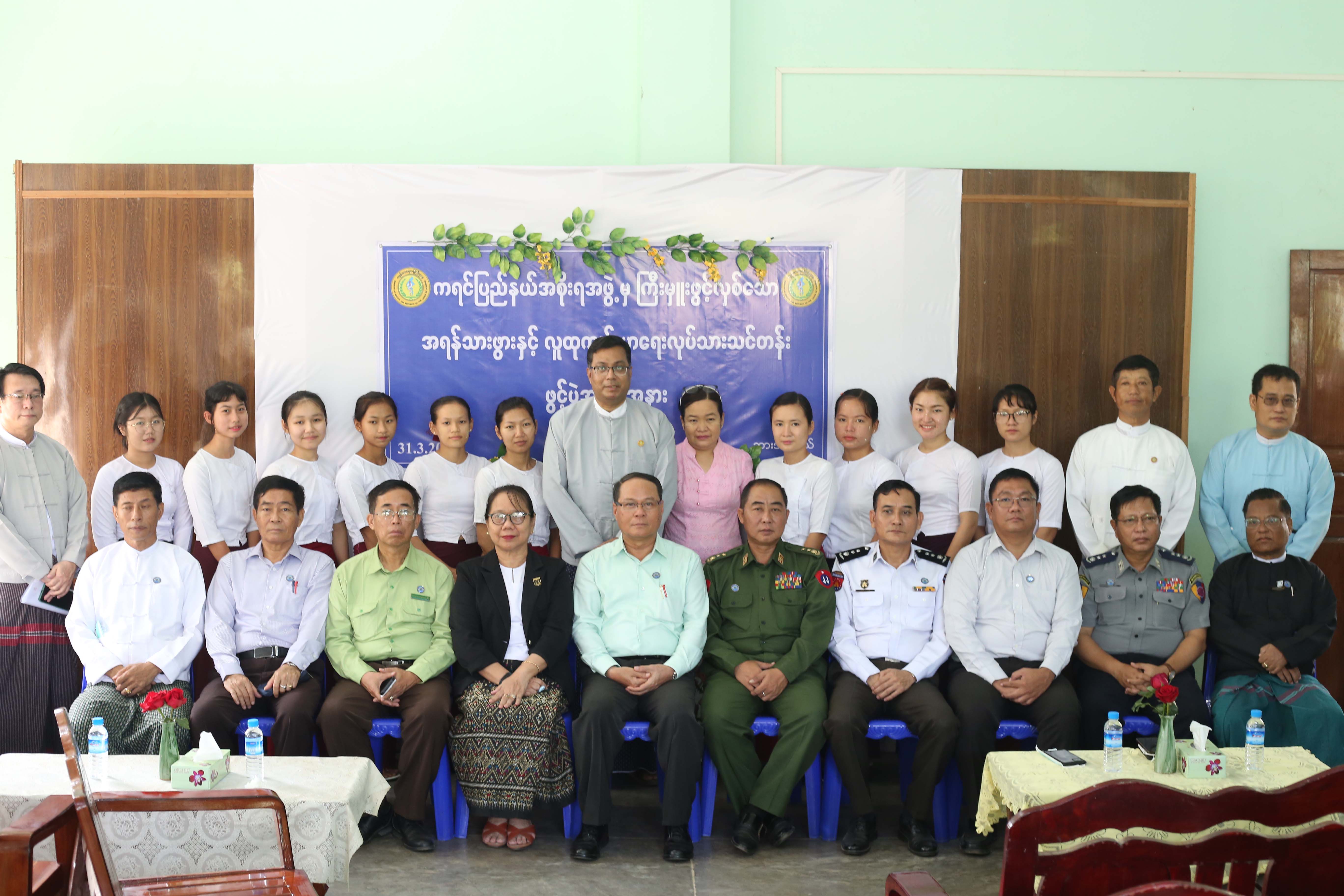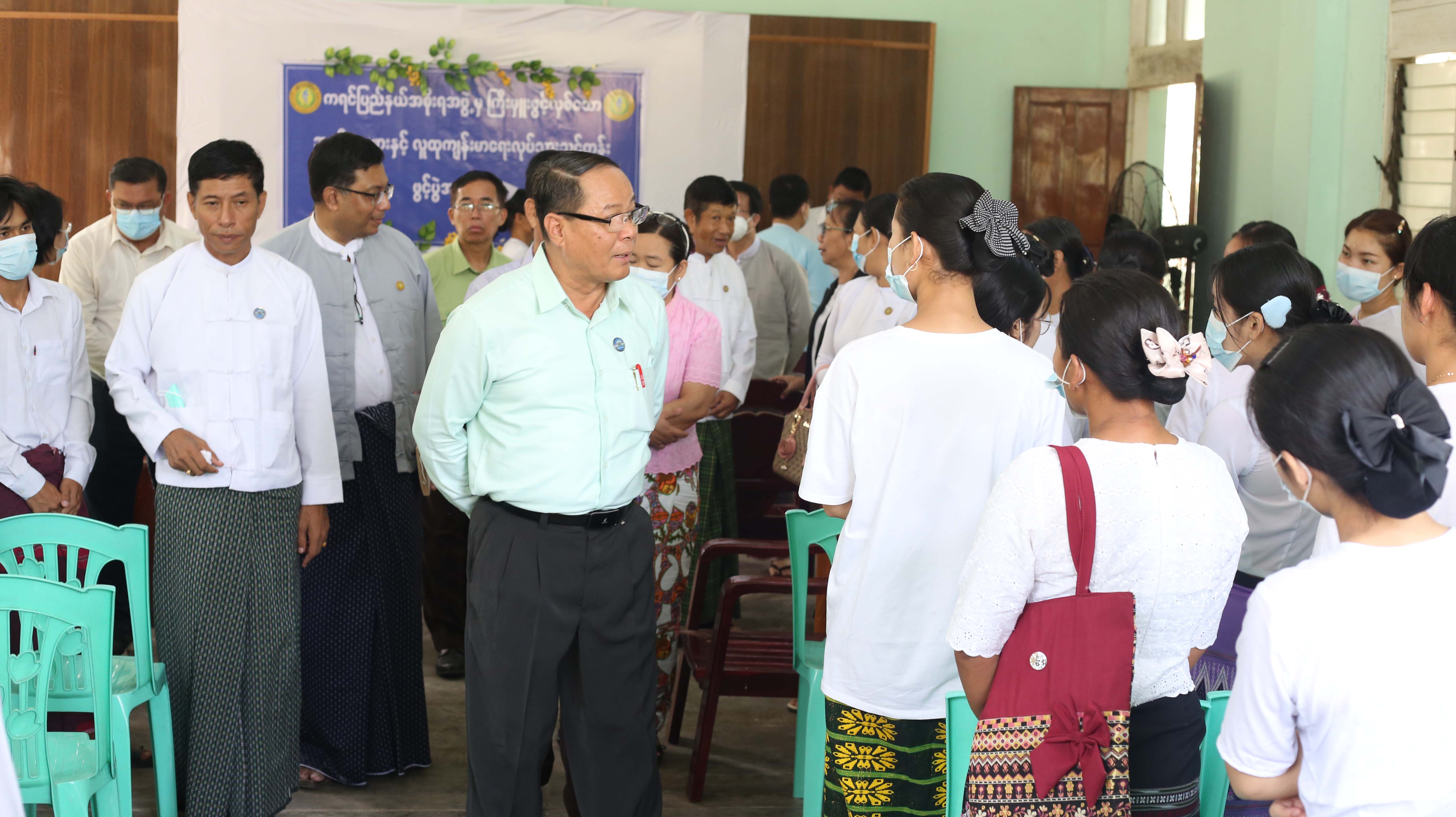 ထို့နောက် ပြည်နယ်ဝန်ကြီးချုပ်က အရန်သားဖွား(၆)လသင်တန်း သင်တန်းသူ(၂၀)ဦးအတွက် ထောက်ပံ့ငွေ ကျပ် တစ်ရာလေးဆယ်ခုနှစ်သိန်း၊ လူထုကျန်းမာရေးလုပ်သား သင်တန်းသား/သင်တန်းသူ ၁၈ ဦးအတွက် ထောက်ပံ့ ငွေကျပ် နှစ်ဆယ့်လေးသိန်းငါးသောင်းကို ထောက်ပံ့ပေးအပ်ခဲ့ပြီး သင်တန်းသား၊သင်တန်းသူများကိုယ်စား သင်တန်းသားတစ်ဦးက ကျေးဇူးတင်စကားပြန်လည်ပြောကြားကာ ပြည်နယ်ဝန်ကြီးချုပ်နှင့်တာဝန်ရှိသူများသည် သင်တန်းသား၊သင်တန်းသူများအား ရင်းရင်းနှီးနှီးတွေ့ဆုံနှုတ်ဆက်၍ အားပေးစကားများပြောကြားခဲ့ကြသည်။
