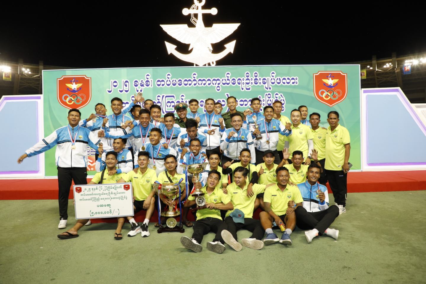 ထို့နောက် နိုင်ငံတော်လုံခြုံရေးနှင့် အေးချမ်းသာယာရေးကော်မရှင်ဥက္ကဋ္ဌ တပ်မတော်ကာကွယ်ရေးဦးစီးချုပ် ဗိုလ်ချုပ်မှူးကြီး မင်းအောင်လှိုင်က ၂၀၂၅ ခုနှစ်၊ (၆၂)ကြိမ်မြောက် တပ်မတော်ကာကွယ်ရေးဦးစီးချုပ်ဖလား တပ်မတော် (ကြည်း၊ ရေ၊ လေ) ဘောလုံးပြိုင်ပွဲတွင် ပထမဆုဆွတ်ခူးရရှိသည့် ကာကွယ်ရေးဦးစီးချုပ်ရုံး (ကြည်း) စခန်းမှူးရုံး ကိုယ်စားပြုအသင်းအား တံခွန်စိုက်ဆုဖလား၊ ဆင့်ပွားဖလားနှင့် ငွေသားဆုများကို ပေးအပ်ချီးမြှင့်ရာ အသင်းအုပ်ချုပ်သူအရာရှိနှင့် အားကစားသမားများက လက်ခံရယူသည်။