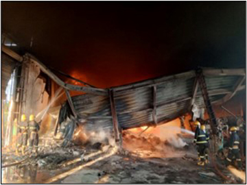 နေပြည်တော်၊ ပုဗ္ဗသီရိမြို့နယ်၊ ကိုးရွာသပြေကုန်းကျေးရွာအုပ်စု၊ ရာဇဌာနီလမ်းဘေးရှိ “New Light” ကော်စေ့စက်ရုံ မီးလောင်မှု