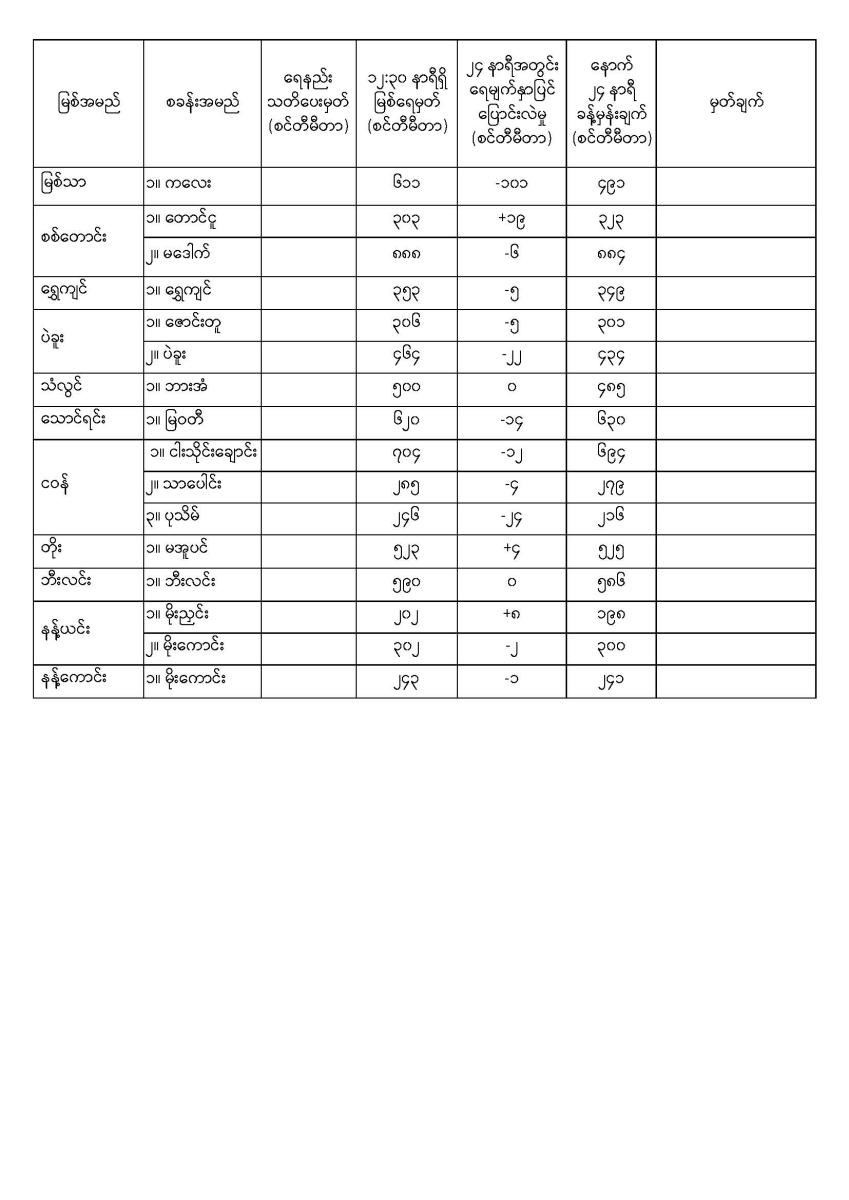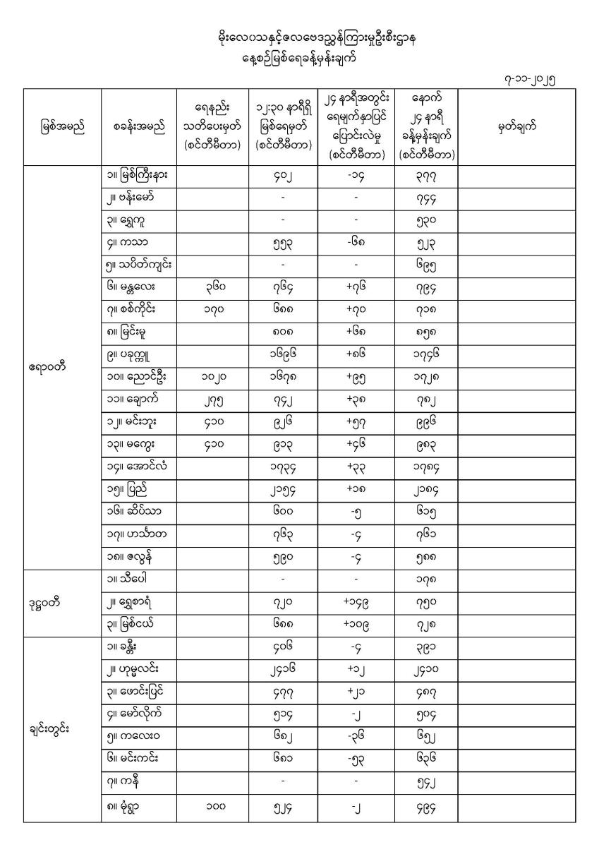 နေ့စဉ်မြစ်ရေခန့်မှန်းချက်  ၇-၁၁-၂၀၂၅ ရက်နေ့ ၁၄:၀၀ နာရီအချိန်ထုတ်ပြန်ချက်