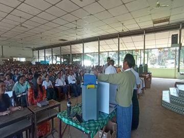ပဲခူးတိုင်းဒေသကြီး၊ ကဝမြို့နယ်၊ အခြေခံပညာအထက်တန်းကျောင်း(ကဝ)၌ မဲရုံမှူး၊ ဒုမဲရုံမှူးနှင့် စက်ကိုင်များအား ရွေးကောက်ပွဲဆိုင်ရာလုပ်ငန်းစဉ်များ အသိပညာပေး ရှင်းလင်းခြင်းနှင့် လက်တွေ့ သရုပ်ပြ မွမ်းမံသင်တန်းပေးခြင်း အခမ်းအနား ကျင်းပ