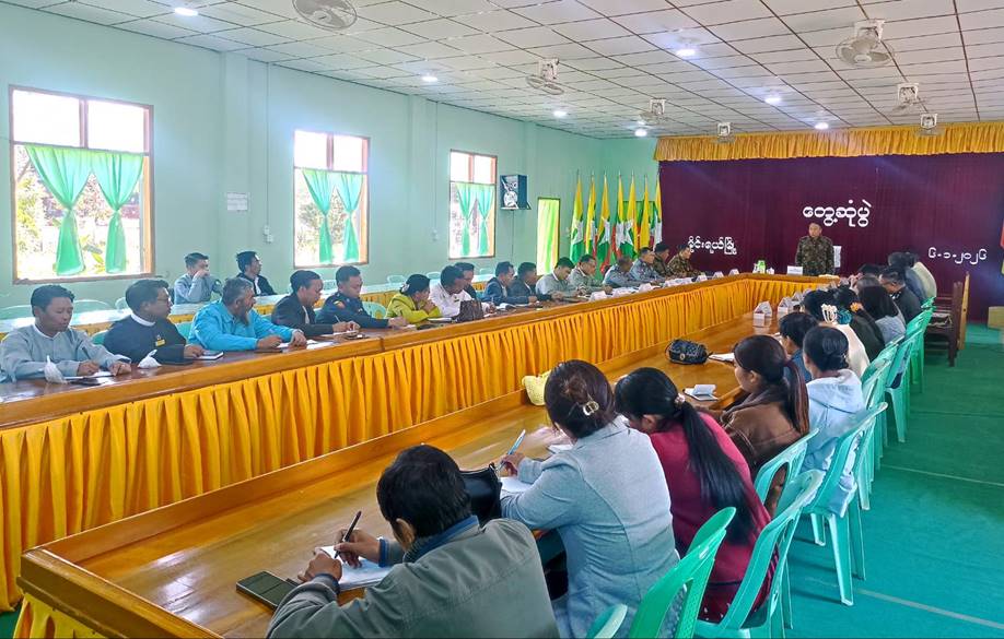 ရှမ်းပြည်နယ်(မြောက်ပိုင်း)၊ မိုင်းရယ်မြို့တွင် ၂၀၂၅ ခုနှစ်၊ ပါတီစုံဒီမိုကရေစီ အထွေထွေရွေးကောက်ပွဲ အပိုင်း(၂)အောင်မြင်စွာကျင်းပနိုင်ရေး လုပ်ငန်းညှိနှိုင်းအစည်းအဝေးကို ယနေ့နံနက်ပိုင်းတွင် အဆိုပါမြို့ရှိ အထွေထွေအုပ်ချုပ်ရေးဦးစီးဌာန အစည်းဝေးခန်းမ၌ပြုလုပ်ရာ အရှေ့မြောက်တိုင်းစစ်ဌာနချုပ်တိုင်မှူး ဗိုလ်မှူးချုပ်အေးမင်းဦးနှင့် ပြည်နယ်ရွေးကောက်ပွဲကော်မရှင်အဖွဲ့ခွဲ(လာရှိုး)မှ တာဝန်ရှိသူများ၊ ဌာနဆိုင်ရာတာဝန်ရှိသူများ တက်ရောက်ကြသည်။