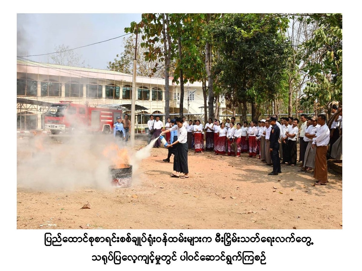 မီးဘေးအန္တရာယ် ကြိုတင်ကာကွယ်ရေး အသိပညာပေးဟောပြောပွဲနှင့် လက်တွေ့သရုပ်ပြလေ့ကျင့်မှု
