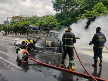 ၂၀၂၄ ခုနှစ်၊ ဇွန် ၁၀ ရက် မွန်းလွဲ ၁၂ နာရီ ၅၃ မိနစ်ခန့်က ရန်ကုန်တိုင်းဒေသကြီး၊ မရမ်းကုန်းမြို့နယ်၊ (၈)ရပ်ကွက်၊ ကမ္ဘာအေးဘုရားလမ်းနှင့် အုတ်ပုံဆိပ်လမ်းထောင့်တွင် သင်္ဃန်းကျွန်းမှ အင်းစိန်သို့ ယာဉ်မောင်း ဦးအောင်ဇော်သန်း မောင်းနှင်လာသော YGN-8(8G/XXXX) Toyota Light Truck (အဖြူရောင်) ယာဉ်သည် အင်ဂျင်အပူလွန်ကဲ၍ ဂီယာဝိုင်ပိုက်ပေါက်ပြီး ဂီယာဝိုင်များ အိတ်ဇောပေါ်သို့ကျရာမှ မီးစတင်လောင်ကျွမ်းမှုဖြစ်ပွားကြောင်း သတင်းရရှိသဖြင့် မြန်မာနိုင်ငံမီးသတ်တပ်ဖွဲ့ဌာနချုပ်နှင့် မရမ်းကုန်းမြို့နယ်မီးသတ်စခန်းတို့မှ မီးသတ်တပ်ဖွဲ့ဝင်များသည် မီးငြှိမ်းသတ်ယာဉ် လေးစီးဖြင့် သွားရောက်မီးငြှိမ်းသတ်ခဲ့ရာ မွန်းလွဲ ၁ နာရီတွင် မီးငြိမ်းခဲ့ပါသည်။
