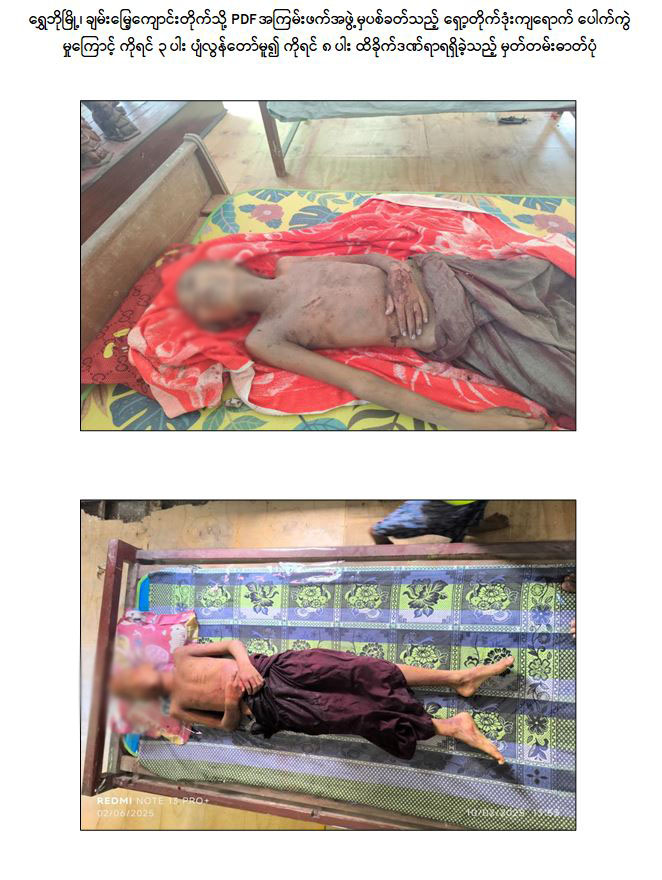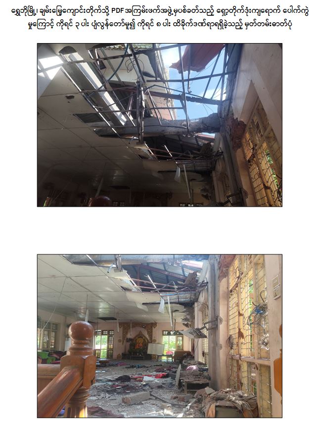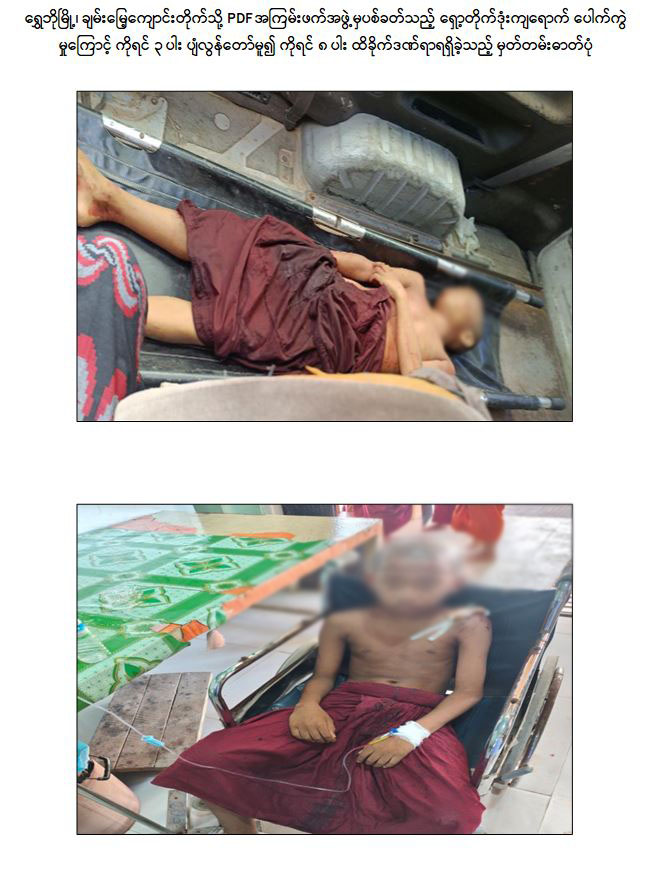 ရွှေဘိုမြို့၌ PDF အမည်ခံ အကြမ်းဖက်သမားများ၏ အသိတရားကင်းမဲ့စွာဖြင့် လက်လုပ်ရှော့တိုက်ဒုံး ပစ်ခတ်မှုကြောင့် သာသနာတော်အကျိုးသယ်ပိုးဆောင်ရွက်နေသည့် သာမဏေကိုရင် (၃) ပါး ပျံလွန်တော်မူ၍ သာမဏေကိုရင် (၈) ပါး ထိခိုက်ဒဏ်ရာများရရှိ