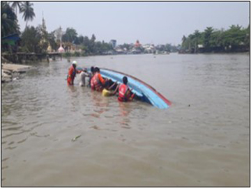 ဧရာဝတီတိုင်းဒေသကြီး၊ မြောင်းမြမြို့နယ်၊ ရွေးမြစ်အတွင်း စက်လှေ တစ်စီး တိမ်းမှောက်မှု