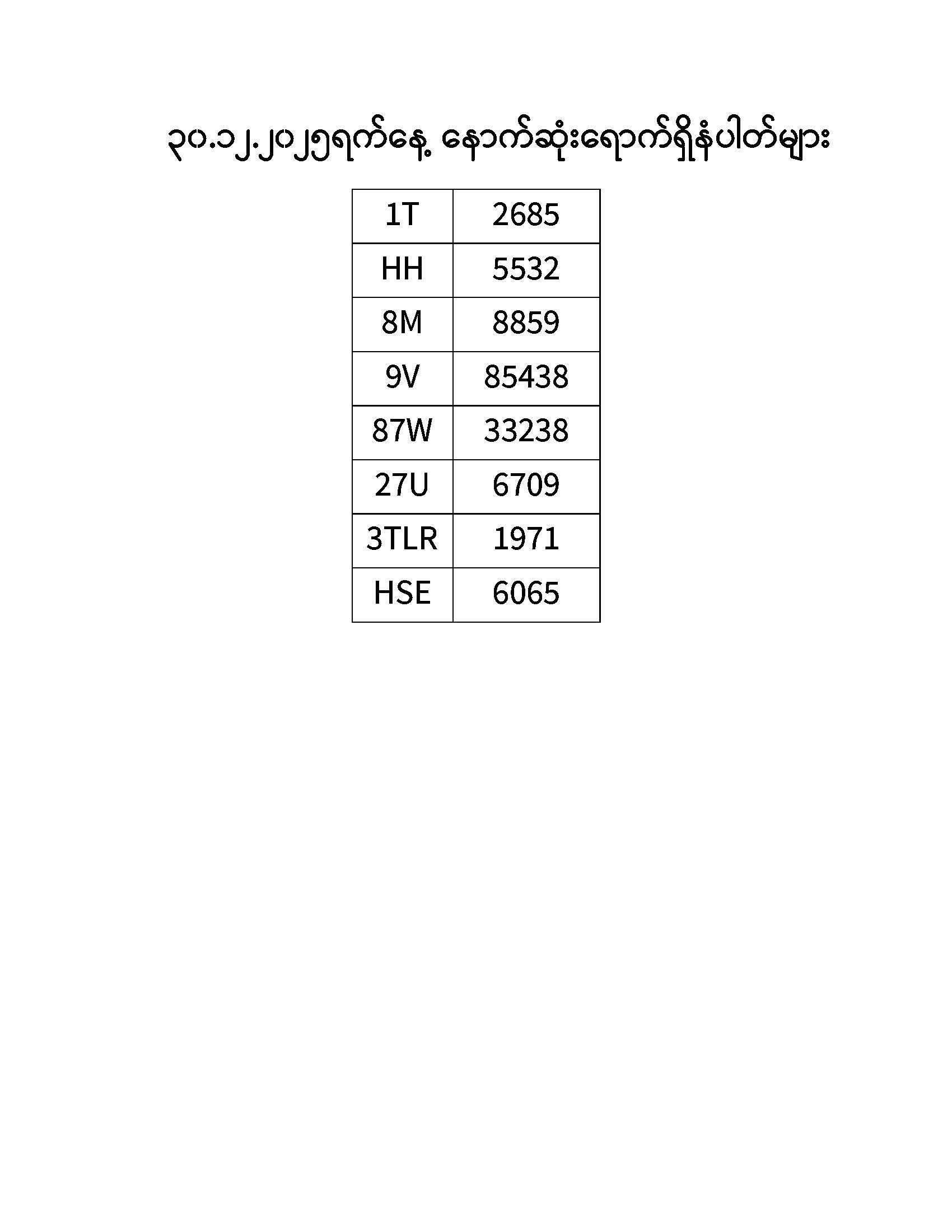 ၃၀.၁၂.၂၀၂၅ ရက်နေ့ထိ နောက်ဆုံးရောက်ရှိ နံပါတ်များ