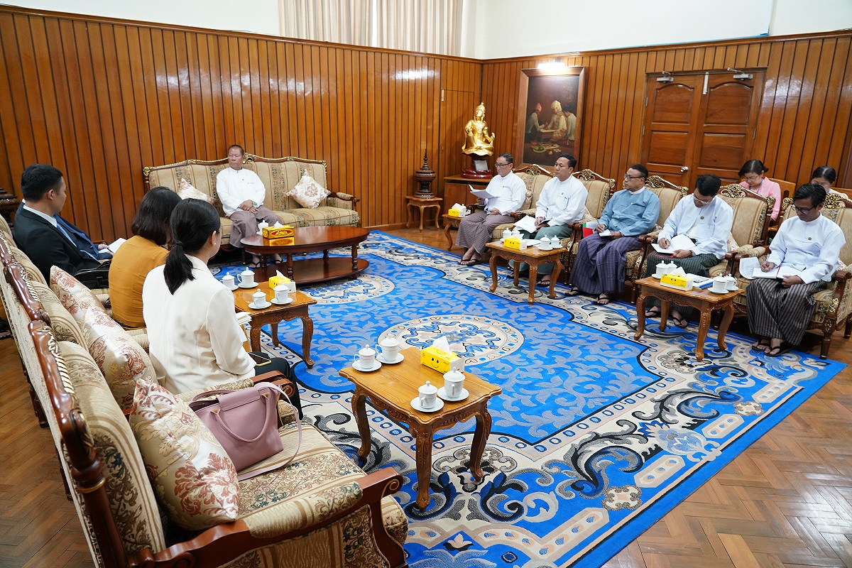UNION Minister for Hotels and Tourism U Aung Thaw received the delegation led by Chairman Mr David Liu of the Myanmar-China Culture and Tourism Promotion Society at the meeting hall of the Ministry of Hotels and Tourism in Nay Pyi Taw yesterday morning.
