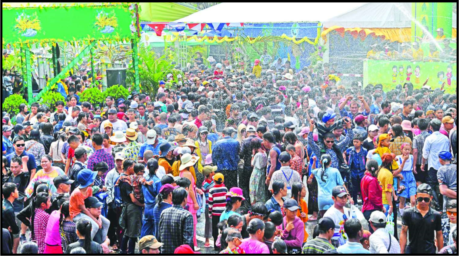 On the fourth day of Thingyan (Atat Day) (16 April), pavilions of water-splashing were crowded with people who splashed water and gave feast in Pwintbyu, Hopone, Ngaputaw, Pindaya, Kyaikto, Tharrawaddy, Kyaukpadaung, Mingala Taungnyunt townships. Similarly, pagodas were also crowded with pilgrims and those who kept the Sabbath.