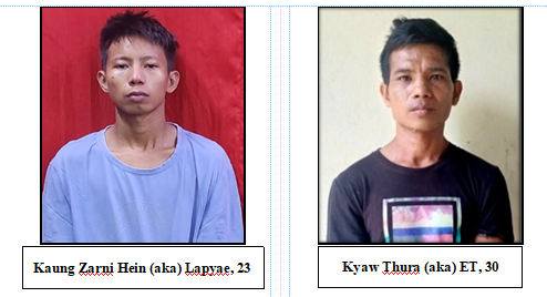 · The fugitives De Nyein Lin, Hazel, Yathaw and Nway Nway from the terrorist group called STF ordered the arrested perpetrators Kaung Zarni Hein and Kyaw Thura to do acts of violence via Telegram channel.