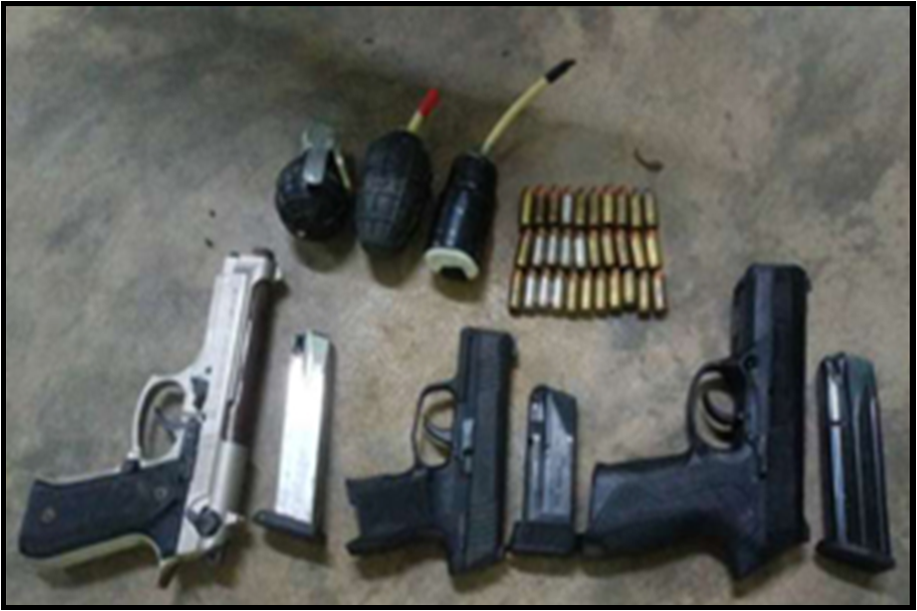 In the incidents, security force arrested 25 male perpetrators and one female perpetrator, along with 10 small arms, 15 magazines, five hand-grenades and 627 rounds as well as the robbed goldwares.