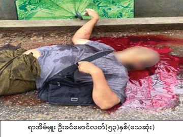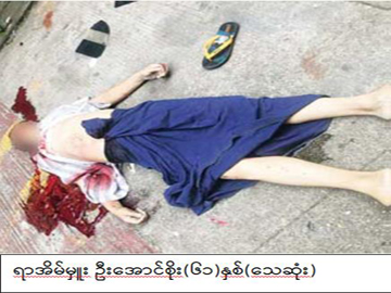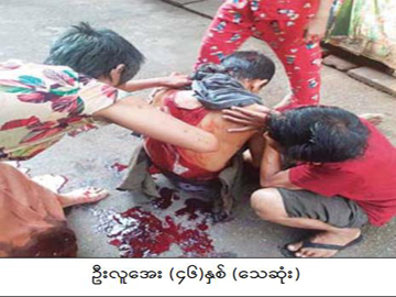- On September 17, Aung Zaw Lin, also known as Aung Gyi, reportedly monitored the situation when Pyae Phyo Nyein, also known as Ko Kin, and Nyi Nyi Htway, also known as Than Gyaung, wantonly assassinated 100-household administrator U Aung Soe by using a pistol in Yadanar Street, No.13 Ward, Hlaing Township.