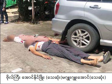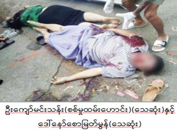 - On January 25, 2023, Aung Zaw Lin, also known as Aung Gyi, reportedly monitored the situation when Maung Zaw, also known as Hlaing Bwar, and Kyat Pha Gyi, who are the remaining offenders to be arrested, wantonly assassinated ex-military personnel U Kyaw Min Than and his wife Daw Naw Saw Myat Mon by using a pistol at the corner of Tabinshwehtee Street and No.2 Street of No.1 Bayintnaung Ward of Mayangone Township.