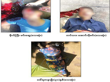- On July 4, 2022, Aung Zaw Lin, also known as Aung Gyi, reportedly monitored the situation when Pyae Phyo Nyein, also known as Ko Kin, and Nyi Nyi Htway, also known as Than Gyaung, wantonly assassinated innocent civilians by using a pistol - two innocent civilians were dead and one was injured - by accusing them of being Dalan/informers.
