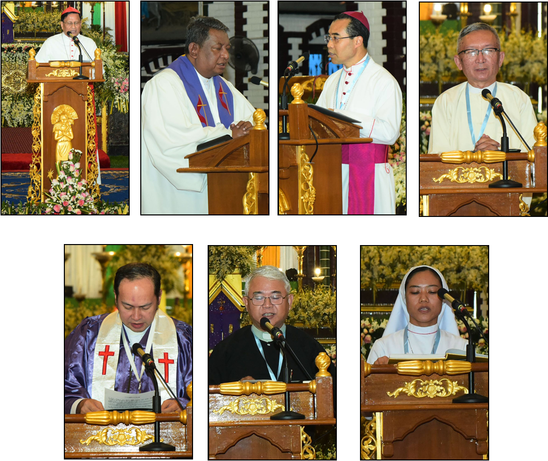 Then, vocalists sang hymns; Rev.D U Aye Min read out the bible; and Archbishop made a special prayer; the Christmas Orchestra played music and Cardinal Charles Bo extended Christmas greetings. Afterwards, Christmas gifts were presented among Vice-Senior General and wife, Cardinal Charles Bo and Archbishop.