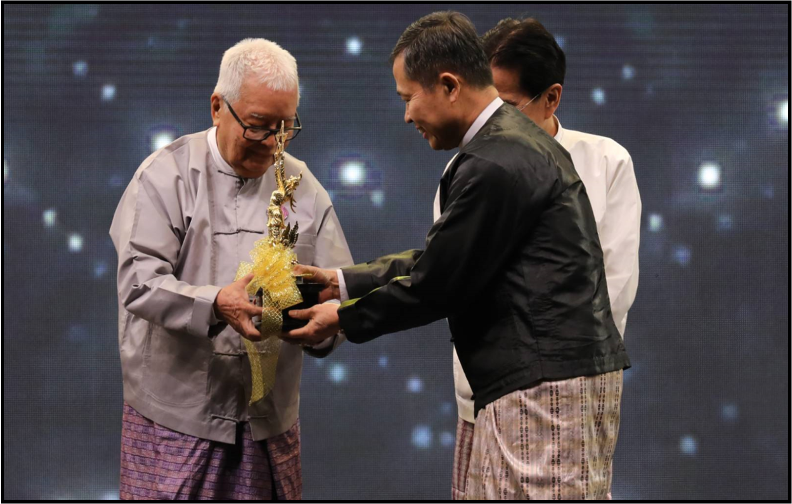 Afterward, the Vice-Senior General and wife, Union Minister U Maung Maung Ohn, experienced academy award holders of artistes presented the academy fashion award, the lifelong academy awards, the academy awards for technicians and artists of the film, the best film music award, the best script award, the best film award, the best director award, the best supporting actress and the best supporting actor awards, and the best actress and the best actor awards to the winners.