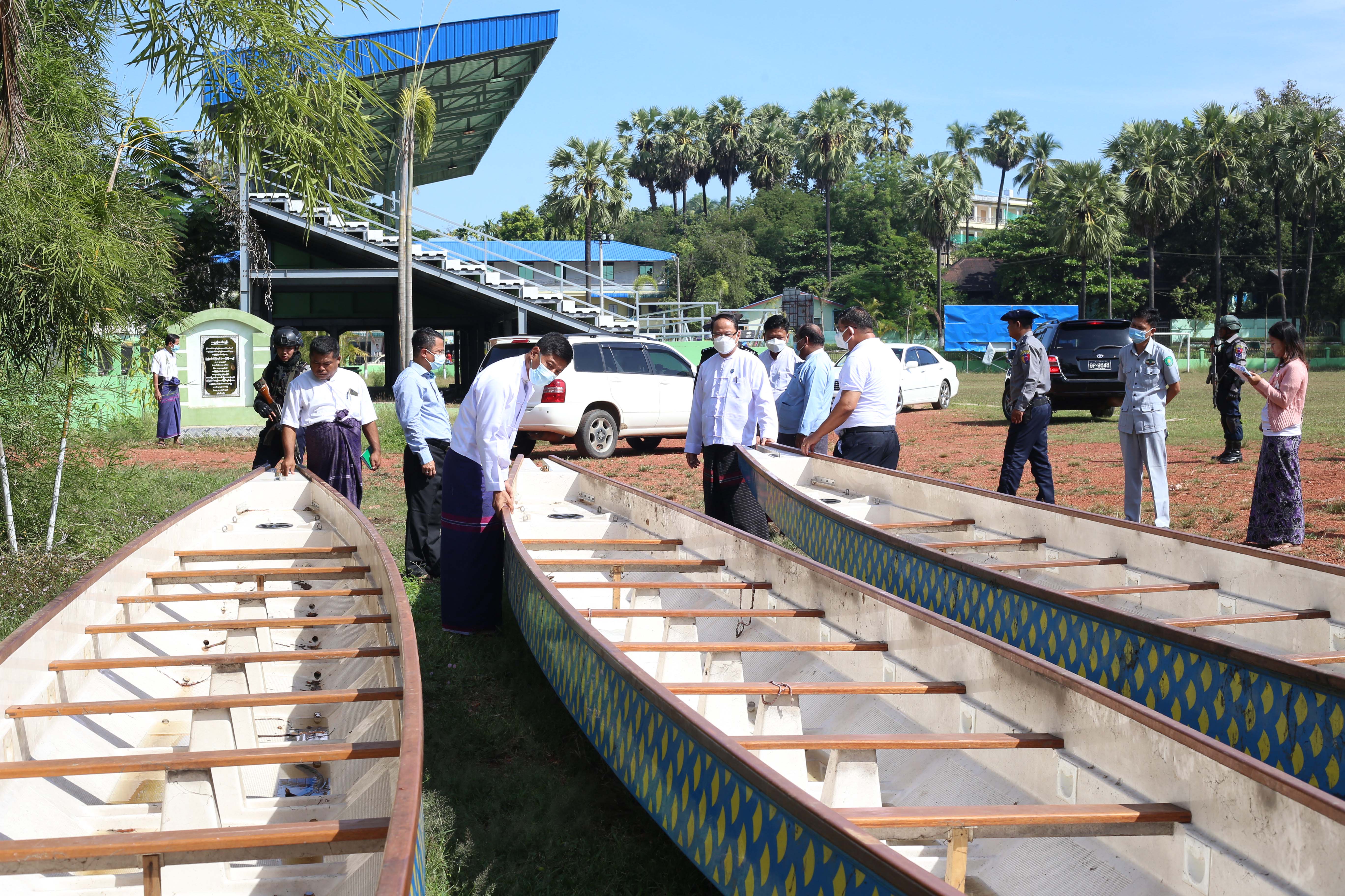 ဆက်လက်၍ ပြည်နယ်ဝန်ကြီးချုပ်နှင့်တာဝန်ရှိသူများသည် ဘားအံမြို့၊ အမှတ်(၃)ရပ်ကွက်၊ ကမ်းနားလမ်း ညဈေးတန်းနေရာအနီး သံလွင်မြစ်အတွင်း၌ ကရင်သက္ကရာဇ်(၂၇၆၂)ခုနှစ် ကရင်နှစ်သစ်ကူးနေ့အထိမ်းအမှတ် လှေလှော်ပြိုင်ပွဲ ကျင်းပနိုင်ရေး ကြည့်ရှုစစ်ဆေးရာ အားကစားနှင့်ကာယပညာဦးစီးဌာန ညွှန်ကြားရေးမှူးဦးစိုးနိုင်က ဒီဇင်ဘာလ ၁၇ ရက်နေ့မှ ၁၈ ရက်နေ့ထိ ၂၀ တက်လှော် နဂါးလှေလှော်ပြိုင်ပွဲ၊ ၇ တက်လှော်နှင့် ၅ တက်လှော် ရိုးရာလှေလှော်ပြိုင်ပွဲများ ထည့်သွင်းကျင်းပနိုင်ရေး ပြင်ဆင်ဆောင်ရွက်နေသည့်အခြေအနေများကို ရှင်းလင်း တင်ပြရာ ပြည်နယ်ဝန်ကြီးချုပ်ကလိုအပ်သည်များလမ်းညွှန်မှာကြားပြီး ပြိုင်ပွဲတွင်အသုံးပြုမည့် နဂါးလှေများနှင့် ရိုးရာလှေများအား ကြည့်ရှုစစ်ဆေးခဲ့ပါသည်။