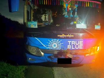 နေပြည်တော်ကောင်စီနယ်မြေ၊ လယ်ဝေးမြို့နယ်၊ ရန်ကုန်-မန္တလေးအမြန်လမ်းမကြီး၌ ခရီးသည်တင် မော်တော်ယာဉ်မှ အရှိန်မထိန်းနိုင်ဘဲ ၎င်းရှေ့မှ မောင်းနှင်နေသည့် မော်တော်ယာဉ်အား ဝင်ရောက်တိုက်မိ