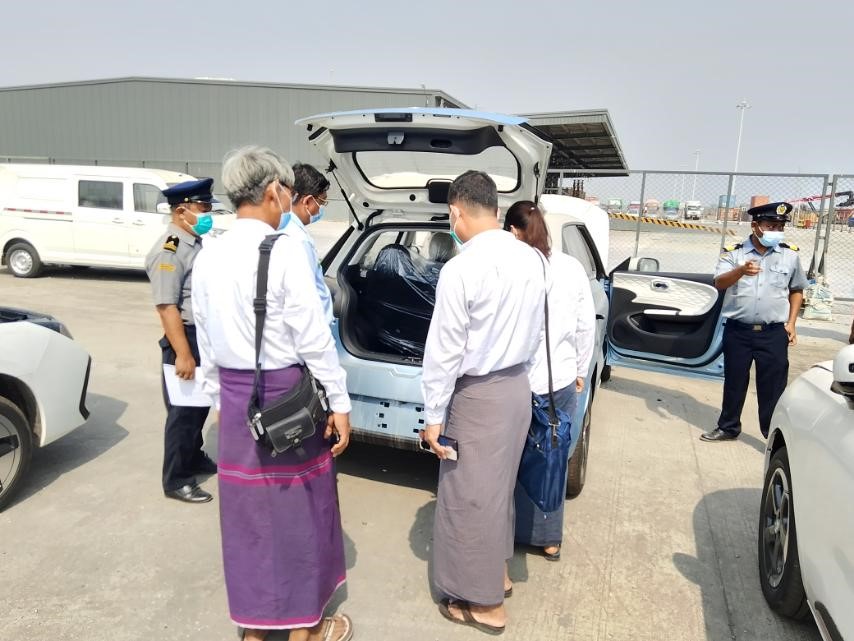 အမျိုးသားအဆင့် လျှပ်စစ်သုံးယာဉ်နှင့်ဆက်စပ်လုပ်ငန်းများ ဖွံ့ဖြိုးတိုးတက်ရေးဦးဆောင်ကော်မတီ၏ ခွင့်ပြုချက်ဖြင့် ASIA PACIFIC AUTOMAKER CORPORATION CO., LTD မှ တင်သွင်းလာသော တရုတ်နိုင်ငံထုတ် BRAND NEW SEDAN (LHD)၊ BRAND NAME: DONGFENG (AEOLUS) E70၊ 2024 MDL၊ C/O: CHINA – (9) U သည် ၂၈-၄-၂၀၂၄ ရက်နေ့တွင်လည်းကောင်း၊ BRAND NEW HATCHBACK (LHD)၊ BRAND NAME: DONGFENG EX1 NANO BOX၊ 2023 MDL၊ C/O: CHINA – (5) U သည် ၂၈-၄-၂၀၂၄ ရက်နေ့တွင်လည်းကောင်း၊ BRAND NEW HATCHBACK (LHD)၊ BRAND NAME: DONGFENG BOX (NAMMI 01)၊ 2024 MDL၊ C/O: CHINA – (9) U သည် ၁၇-၀၆-၂၀၂၄ ရက်နေ့တွင်လည်းကောင်း ရွာသာကြီးကုန်းတွင်းဆိပ်ကမ်း (Dryport-KM) သို့အသီးသီးရောက်ရှိခဲ့ပါသည်။ အဆိုပါ Import Declaration ဖွင့်လှစ်ခဲ့သည့် လျှပ်စစ်သုံးမော်တော်ယာဉ် (၂၃) စီးအား ရွာသာကြီးကုန်းတွင်းဆိပ်ကမ်း (Dryport-KM) ၌ ကုန်းလမ်းပို့ဆောင်ရေးညွှန်ကြားမှုဦးစီးဌာန၊ အမှတ် (၁) အကြီးစားစက်မှုလုပ်ငန်း၊ စက်မှုပူးပေါင်းဆောင်ရွက်ရေးဦးစီးဌာနနှင့် ကုန်သွယ်ရေးဦးစီးဌာနတို့ပါဝင်သော ပူးပေါင်းစစ်ဆေးရေးအဖွဲ့ဖြင့် လျှပ်စစ်သုံးမော်တော်ယာဉ်များအတွက် ထုတ်ပြန်ထားသည့် စံချိန်စံညွှန်းသတ်မှတ်ချက်များ၊ သွင်းကုန်လိုင်စင်၊ သွင်းကုန်ကြေညာလွှာပါ ခွင့်ပြုချက်များနှင့် တိုက်ဆိုင်စစ်ဆေးခဲ့ပြီး ၂၈-၀၂-၂၀၂၅ ရက်နေ့တွင် လုပ်ထုံးလုပ်နည်းများနှင့်အညီ စိစစ်ထုတ်ယူခွင့်ပြုခဲ့ပါကြောင်း၊ အဆိုပါ တင်သွင်းမှုများအတွက် အခွန်ကင်းလွတ်ခွင့်ပြုထားကြောင်း သတင်းရရှိပါသည်။