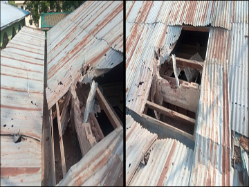 ဝက်လက်မြို့နယ်၌ PDF အမည်ခံ အကြမ်းဖက်သမားများက ရပ်ကွက်အတွင်းသို့ ရှော့တိုက်ဒုံးများဖြင့် ဆင်ခြင်တုံတရားမဲ့စွာ ရမ်းသန်းပစ်ခတ်တိုက်ခိုက်ခဲ့မှုကြောင့် နိုင်ငံတော်ပိုင်အဆောက်အဦဖြစ်သည့် မြို့နယ်ပြည်သူ့ဆေးရုံဝင်းအတွင်းရှိ လူနာဆောင် ထိခိုက်ပျက်စီး