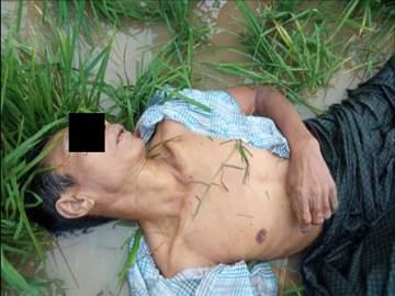 အလားတူ မွန်းလွဲ ၁၂ နာရီ ၅၀ မိနစ်တွင် မန္တလေးတိုင်းဒေသကြီး၊ ပုသိမ်ကြီးမြို့နယ်၊ ဆည်တာကျေးရွာ၏အရှေ့ဘက် ဆည်တာ-မင်းရဲလှကျေးရွာချင်းဆက်လမ်းပေါ်၌ အမျိုးသားတစ်ဦး ဒဏ်ရာများဖြင့် လဲကျသေဆုံးနေကြောင်းသတင်းအရ လုံခြုံရေးတပ်ဖွဲ့ဝင်များက သွားရောက်စစ်ဆေးခဲ့ရာ အဆိုပါနေရာတွင် အသက်(၅၀)နှစ်ခန့်ရှိ အမျိုးသားတစ်ဦး (စိစစ်ဆဲ)တွင် ဓားဒဏ်ရာများဖြင့် သေဆုံးနေသည်ကိုတွေ့ရှိရသဖြင့် စစ်ဆေးနိုင်ရေး မန္တလေးပြည်သူ့ဆေးရုံကြီးသို့ ပို့ဆောင်ထားရှိကြောင်း သိရသည်။