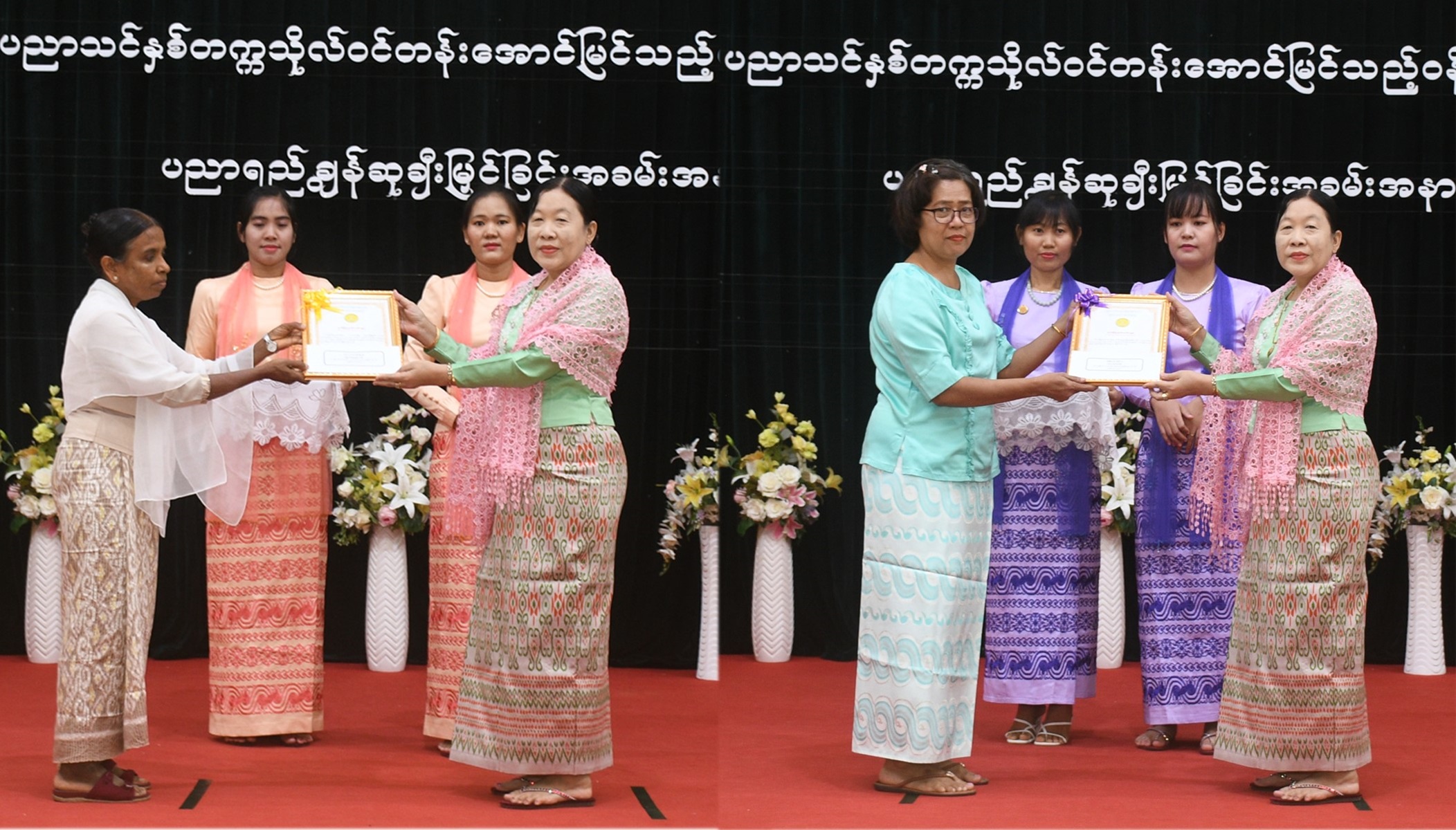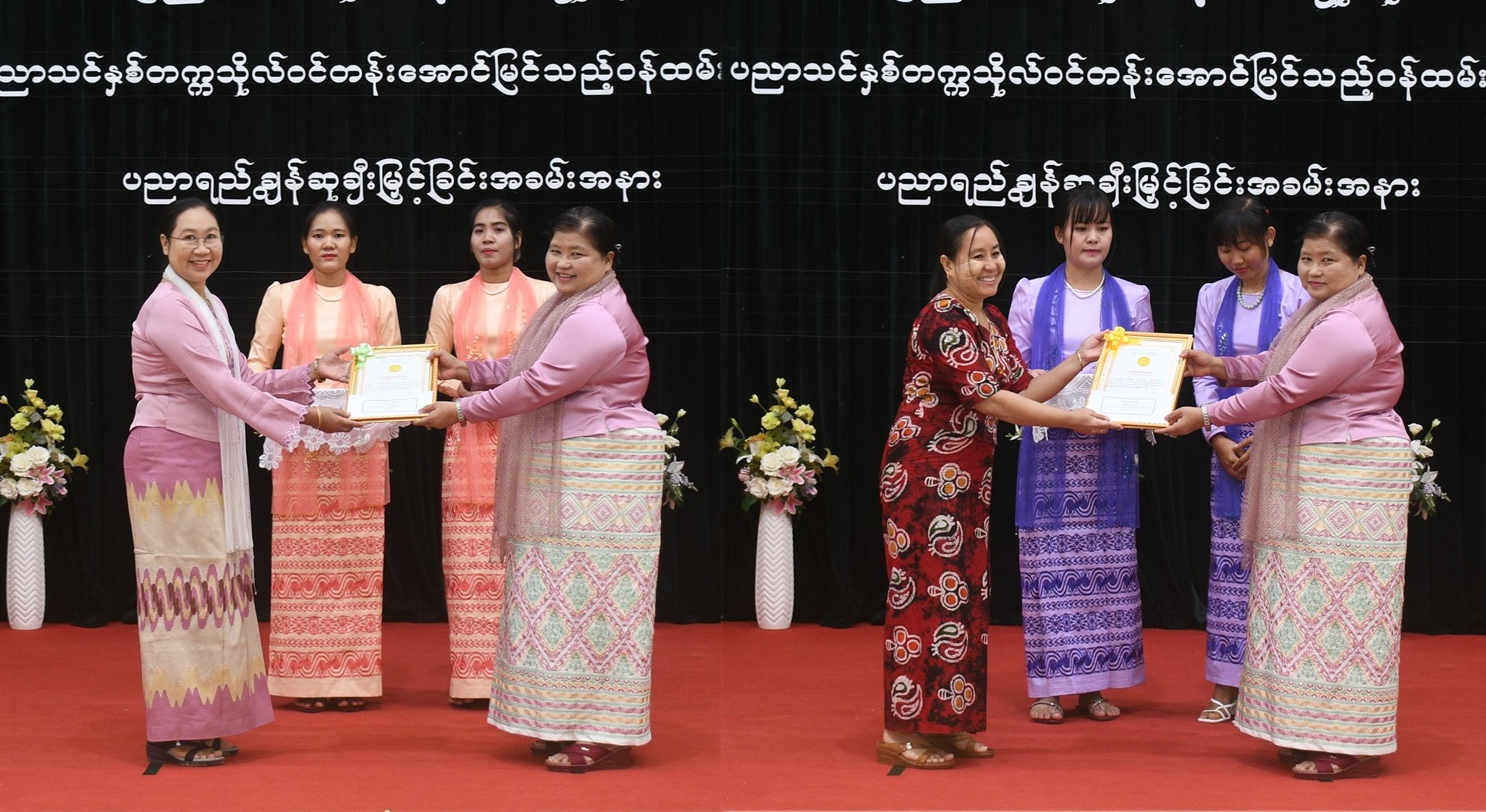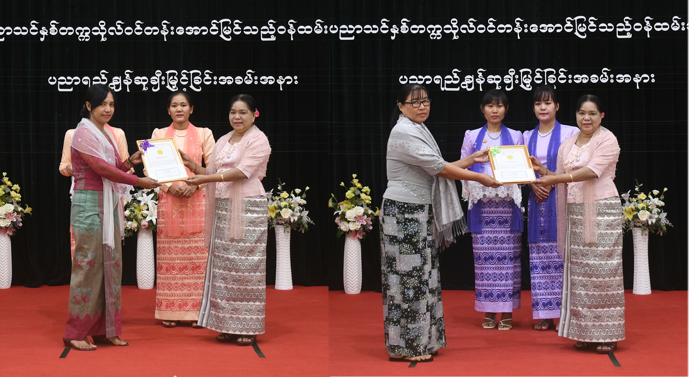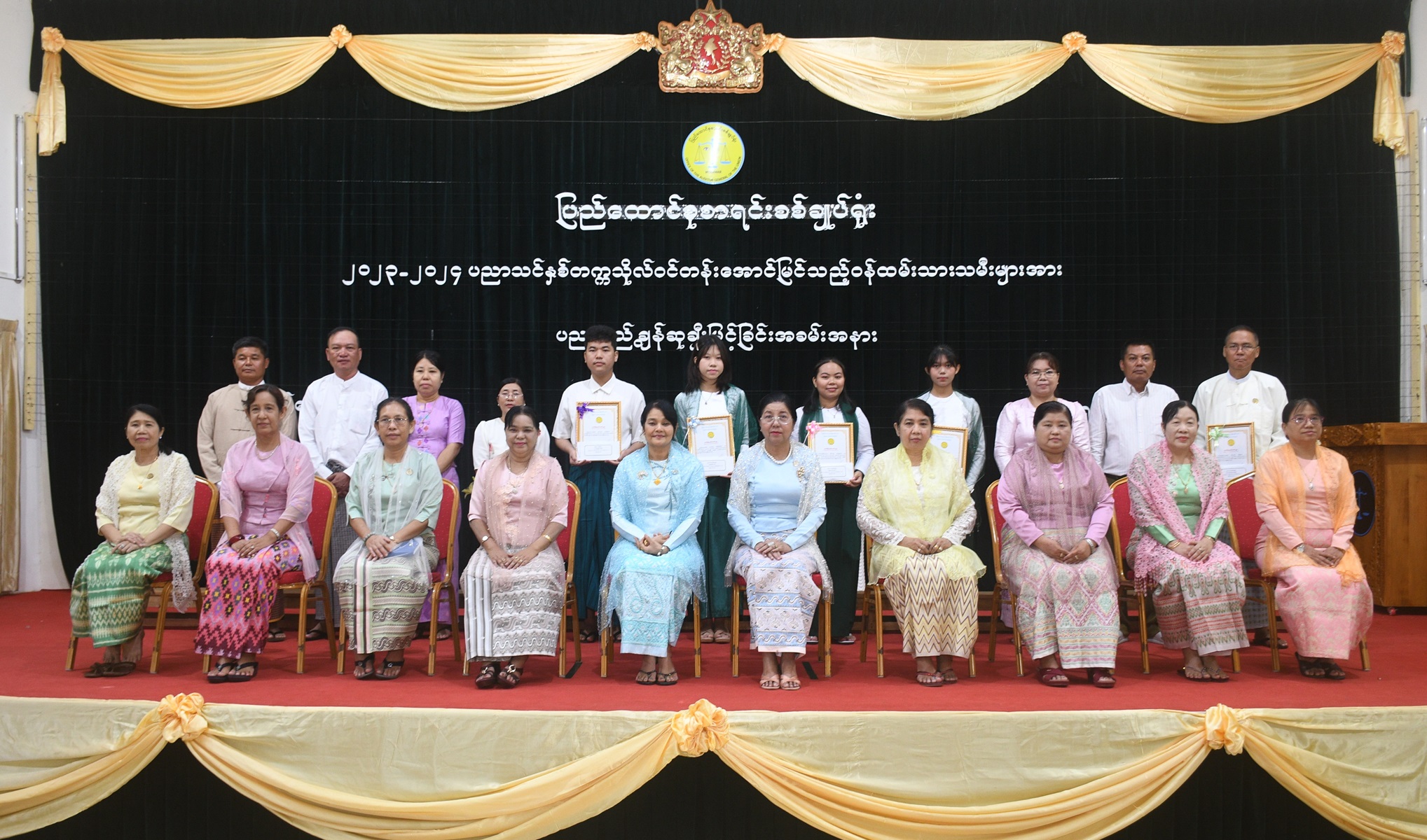 ဆက်လက်၍ ပြည်ထောင်စုစာရင်းစစ်ချုပ်၊ ဒုတိယစာရင်းစစ်ချုပ်၊ အမြဲတမ်းအတွင်းဝန် နှင့် ညွှန်ကြားရေးမှူးချုပ်များက ထူးချွန်ဝန်ထမ်းသားသမီးများဖြစ်သည့် ဘာသာစုံဂုဏ်ထူးရှင် (၁) ဦး၊ ငါးဘာသာဂုဏ်ထူးရှင် (၄) ဦး၊ လေးဘာသာဂုဏ်ထူးရှင် (၅) ဦး၊ သုံးဘာသာဂုဏ်ထူးရှင် (၄) ဦး ၊ နှစ်ဘာသာဂုဏ်ထူးရှင် (၄) ဦး ၊ တစ်ဘာသာဂုဏ်ထူးရှင် (၅) ဦး နှင့် ရိုးရိုးအောင်မြင်သူ (၃၂) ဦးတို့အား ဂုဏ်ပြုဆုငွေနှင့် ဂုဏ်ပြုမှတ်တမ်းလွှာများ ပေးအပ်ချီးမြှင့်ရာ တက်ရောက် လာသည့် ကျောင်းသား ကျောင်းသူများနှင့် Online မှ တက်ရောက်သည့် ကျောင်းသား ကျောင်းသူများ ကိုယ်စားမိဘများနှင့် သက်ဆိုင်ရာတာဝန်ရှိ သူများက လက်ခံခဲ့ကြသည်။