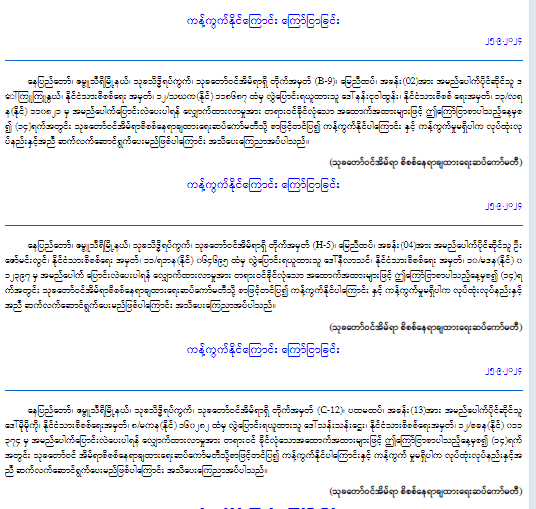နေပြည်တော်စည်ပင်သာယာရေးကော်မတီ၊စီမံရေးရာဌာနမှ ကန့်ကွက်နိုင်ကြောင်းကြော်ငြာခြင်း