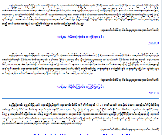 Naypyitaw Development Committee/ နေပြည်တော် / September 25, 2024