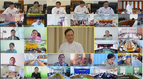 ပညာရေးဝန်ကြီးဌာန ဒုတိယဝန်ကြီး ဒေါက်တာဇော်မြင့်နှင့် တက္ကသိုလ်၊ ဒီဂရီကောလိပ် များ၏ ပါမောက္ခချုပ်များ၊ ကျောင်းအုပ်ကြီးများ၊ ဒုတိယပါမောက္ခချုပ်များ၊ ပါမောက္ခများ ညှိနှိုင်း အစည်းအဝေးကို ယနေ့မွန်းလွဲပိုင်းတွင် နေပြည်တော်ပညာရေးဝန်ကြီးဌာန ရုံးအမှတ် (၁၃) ရှိ အစည်းအဝေးခန်းမ၌ ကျင်းပရာ အဆင့်မြင့်ပညာဦးစီးဌာန၊ ဆရာအတတ်ပညာဦးစီးဌာန၊ ကျောင်းပြင်ပနှင့်တစ်သက်တာပညာရေးဦးစီးဌာနတို့မှ ညွှန်ကြားရေးမှူးချုပ်များ၊ ဒုတိယအမြဲတမ်း အတွင်းဝန်များ တက်ရောက်ကြပြီး တက္ကသိုလ်၊ ဒီဂရီကောလိပ်များမှ ပါမောက္ခချုပ်များ၊ ကျောင်းအုပ်ကြီးများ၊ ဒုတိယပါမောက္ခချုပ်များနှင့် ပါမောက္ခ၊ ဌာနမှူးများက Online ဖြင့် တက်ရောက်ကြသည်။
