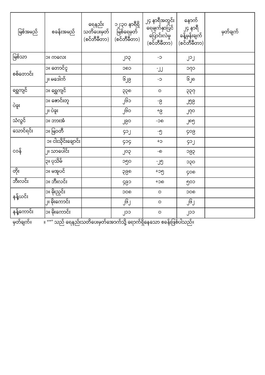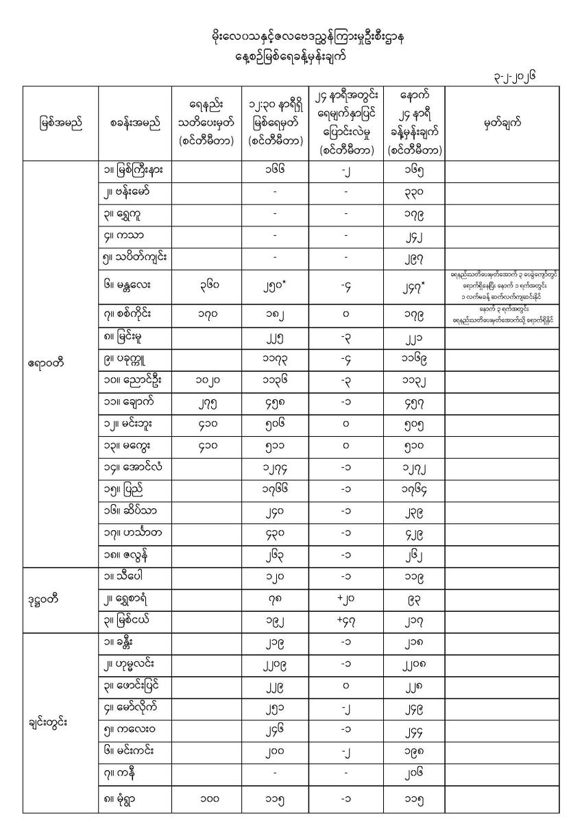 နေ့စဉ်မြစ်ရေခန့်မှန်းချက်  ၃-၂-၂၀၂၆ ရက်နေ့ ၁၄:၀၀ နာရီအချိန်ထုတ်ပြန်ချက်