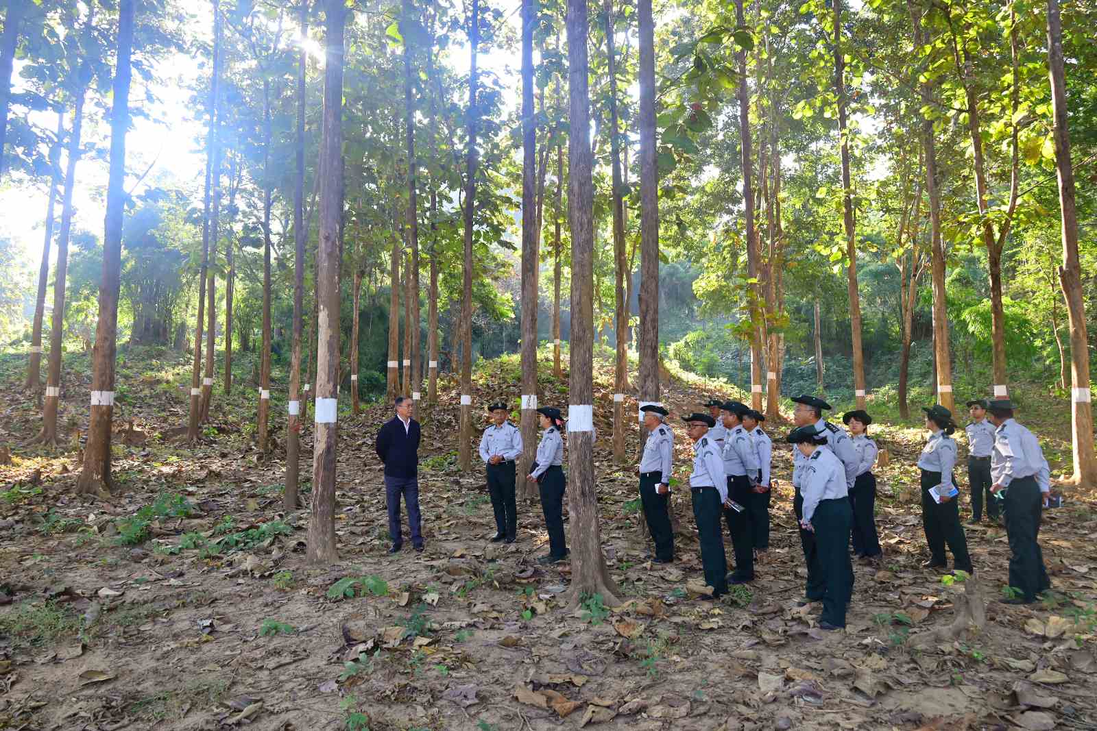 ပြည်ထောင်စုဝန်ကြီး ဦးခင်မောင်ရီ တောတွင်းလက်တွေ့ကွင်းဆင်းဆောင်ရွက်နေသည့် မြန်မာနိုင်ငံသစ်တောကျောင်း၊ အမှတ်စဉ် ၁၁၉ မှ သင်တန်းသားများအား သွားရောက်တွေ့ဆုံ
