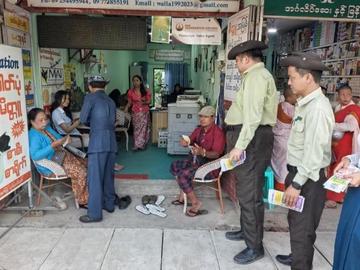 ရန်ကုန်တိုင်းဒေသကြီး၊ မင်္ဂလာဒုံမြို့နယ်၌ ပါတီစုံဒီမိုကရေစီအထွေထွေရွေးကောက်ပွဲတွင် မဲဆန္ဒရှင် ပြည်သူများအားလုံးပါဝင်မဲပေးနိုင်ရေး ရွေးကောက်ပွဲလှုံ့ဆော်ရေး လက်ကမ်းစာစောင်များ ဖြန့်ဝေ