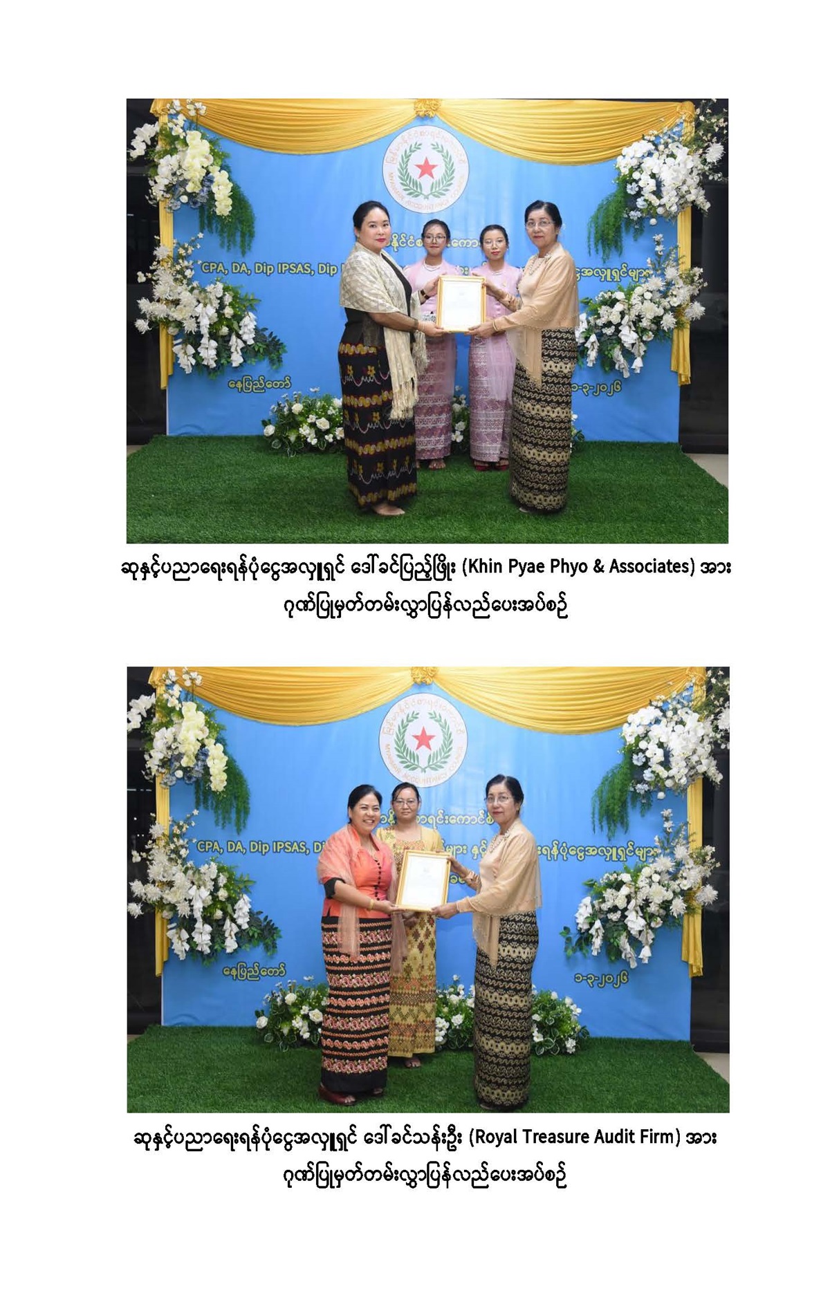 လက်မှတ်ရပြည်သူ့စာရင်းကိုင်နှင့်စာရင်းကိုင်ပညာဒီပလိုမာအောင်လက်မှတ်နှင့် နိုင်ငံပိုင်ကဏ္ဍအတွက် နိုင်ငံတကာစာရင်းစံများ၊ နိုင်ငံတကာဘဏ္ဍာရေးအစီရင်ခံခြင်းစံများ ဘွဲ့လွန်ဒီပလိုမာလက်မှတ်ပေးအပ်ခြင်းနှင့် ဆုချီးမြှင့်ခြင်း အခမ်းအနားကျင်းပခြင်း