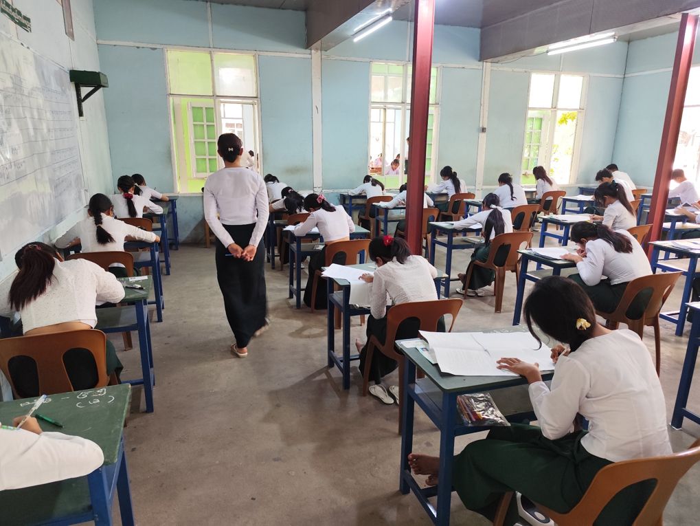 ယင်းသို့ ကျောင်းသား၊ ကျောင်းသူများ စိတ်အေးချမ်းသာစွာနှင့် ဘေးအန္တရာယ်ကင်းရှင်းစွာ ဖြေဆိုနိုင်ရေးအတွက် သက်ဆိုင်ရာလုံခြုံရေးအဖွဲ့ဝင်များ၊ ကျန်းမာရေးဝန်ထမ်းများ၊ မီးသတ်တပ်ဖွဲ့ဝင်များနှင့် ရပ်ကွက်ကျေးရွာအုပ်ချုပ်ရေးအဖွဲ့ဝင်များက စနစ်တကျ စောင့်ကြပ်ကြည့်ရှုပေးလျက်ရှိပြီး ကျောင်းသား၊ ကျောင်းသူများ၏ စာမေးပွဲဖြေဆိုနေမှုများကို သက်ဆိုင်ရာ တိုင်းဒေသကြီးနှင့်ပြည်နယ်များရှိ တိုင်းဒေသကြီး/ပြည်နယ်ဝန်ကြီးချုပ်များ၊ တိုင်းမှူးများနှင့် တာဝန်ရှိသူများက သွားရောက်ကြည့်ရှုအားပေးခဲ့ကြကြောင်း သိရှိရသည်။