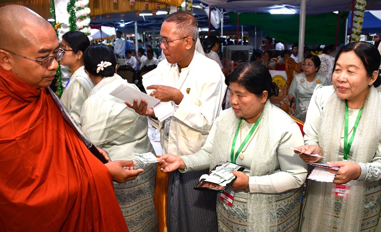 ၂၀၂၆ ခုနှစ် သာသနာတော်ဆိုင်ရာ ဘွဲ့တံဆိပ်တော်များ ဆက်ကပ်ပူဇော်ခြင်း မဟာမင်္ဂလာ အခမ်းအနားသို့ ပြည်ထောင်စုစာရင်းစစ်ချုပ် တက်ရောက်ခြင်းနှင့် ဝန်ထမ်းများနှင့်အတူ ဆွမ်းဆန်စိမ်းနှင့်လှူဖွယ်ဝတ္ထုပစ္စည်းများ လှူဒါန်းခြင်း