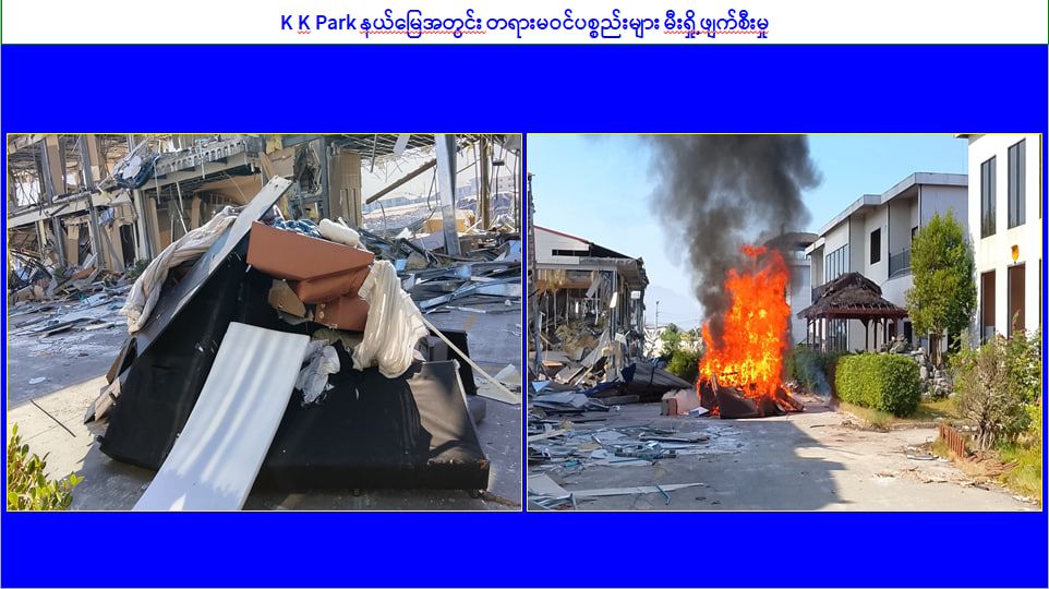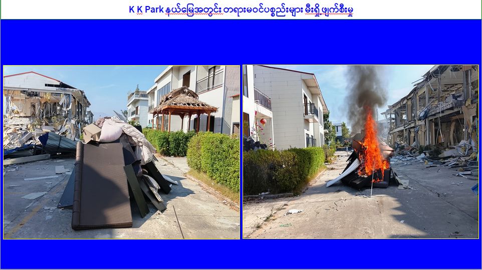 KK Park နယ်မြေအတွင်း အွန်လိုင်းလိမ်လည်လောင်းကစားမှုကျူးလွန်ရာတွင် အသုံးပြုသည့် တရားမဝင်အဆောက်အအုံ ၅၀၉ လုံးကို စနစ်တကျဖြိုချဖျက်ဆီးပြီးစီး၊ အွန်လိုင်းလိမ်လည်လောင်းကစားမှုကျူးလွန်ရာတွင် အသုံးပြုခဲ့သည့် ပစ္စည်းများအား စနစ်တကျ ဆက်လက်မီးရှို့ဖျက်ဆီး