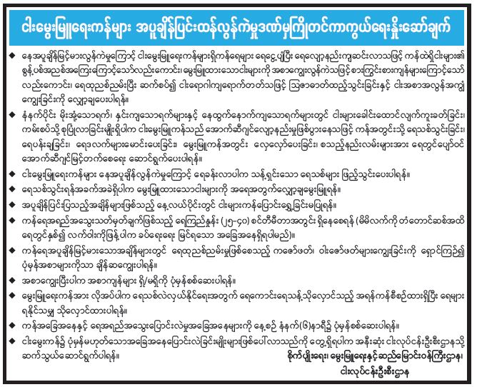 ကြက်ငှက်တုပ်ကွေးရောဂါ ကြိုတင်ကာကွယ်ရေး အသိပေးနှိုးဆော်ချက်