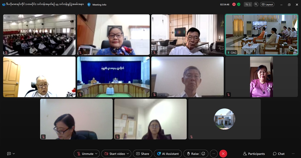 ပြည်ထောင်စုစာရင်းစစ်ချုပ်ရုံး၊ အဆင့်မြင့်စာရင်းကိုင်နှင့်စာရင်းစစ်သင်တန်းကျောင်း၊ နေပြည်တော်နှင့် ရန်ကုန်တို့တွင် မြန်မာနိုင်ငံစာရင်းကောင်စီမှ ကြီးမှူးဖွင့်လှစ်သည့် ဒီပလိုမာစာရင်းကိုင်(ပထမပိုင်း) သင်တန်းအမှတ်စဉ် - ၄၅ သင်တန်းဖွင့်ပွဲအခမ်းအနားကို ၂၀၂၅ ခုနှစ်၊ နိုဝင်ဘာလ ၆ ရက်နေ့ နံနက် ၉ : ၃၀ နာရီတွင် နေပြည်တော်ရှိ ပြည်ထောင်စု စာရင်းစစ်ချုပ်ရုံး၊ နဝရတ်ခန်းမ၌ Hybrid စနစ်ဖြင့် ကျင်းပခဲ့သည်။