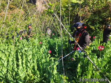 ထို့အတူ နံနက် ၉ နာရီ ၁၀ မိနစ်မှ ညနေ ၃ နာရီ ၄၀ မိနစ်ထိ မိုင်းဆတ်ခရိုင်ရဲတပ်ဖွဲ့မှ တပ်ဖွဲ့ဝင်များနှင့် ဌာနဆိုင်ရာ ဝန်ထမ်းများပါဝင်သော ပူးပေါင်းအဖွဲ့က မိုင်းဆတ်မြို့နယ်၊ ခကြားတို ကျေးရွာအနီးတစ်ဝိုက်ရှိ သီးပွင့်ဆဲ ဘိန်းစိုက်ခင်း ၁၇ ဧကခန့်၊ ခီးလုံကျေးရွာအနီးတစ်ဝိုက်ရှိ သီးပွင့်ဆဲ ဘိန်းစိုက်ခင်း ၃၀ ဧကခန့်နှင့် ဟိုခီးကျေးရွာအနီးတစ်ဝိုက်ရှိ သီးပွင့်ဆဲ ဘိန်းစိုက်ခင်း ၂၅ ဧကခန့်အား လည်းကောင်း။