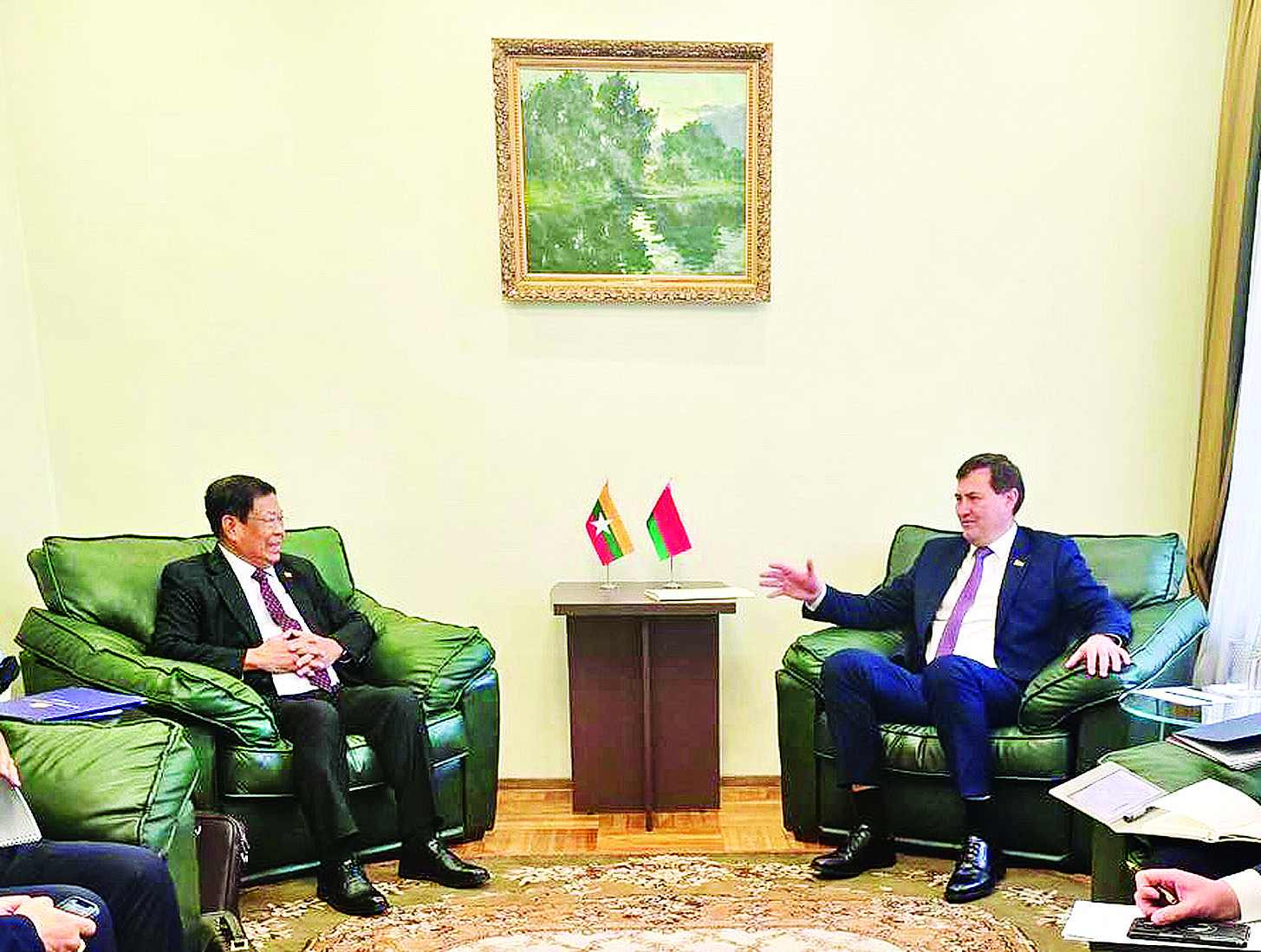 ဘယ်လာရုစ်သမ္မတနိုင်ငံ မင့်စ်မြို့၌ ကျင်းပနေသည့် ယူရေးရှားဒေသ လုံခြုံရေးဆိုင်ရာ မင့်စ်နိုင်ငံတကာအဆင့်မြင့်ညီလာခံသို့ တက်ရောက်လျက်ရှိသည့် နိုင်ငံခြားရေးဝန်ကြီးဌာန ပြည်ထောင်စုဝန်ကြီး ဦးသန်းဆွေသည် နှစ်နိုင်ငံတွေ့ဆုံဆွေးနွေးမှုများကို ဆောင်ရွက်ခဲ့သည်။