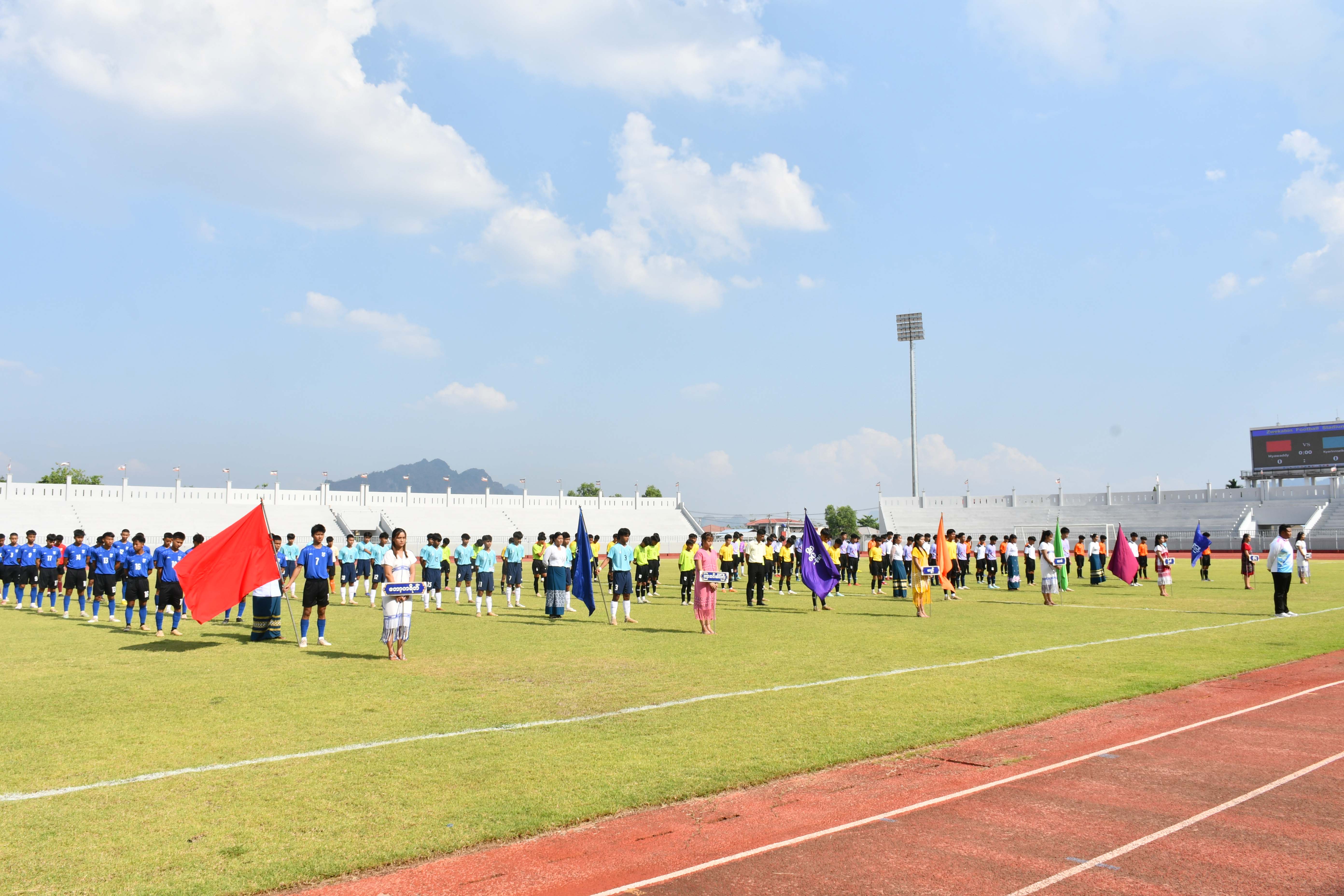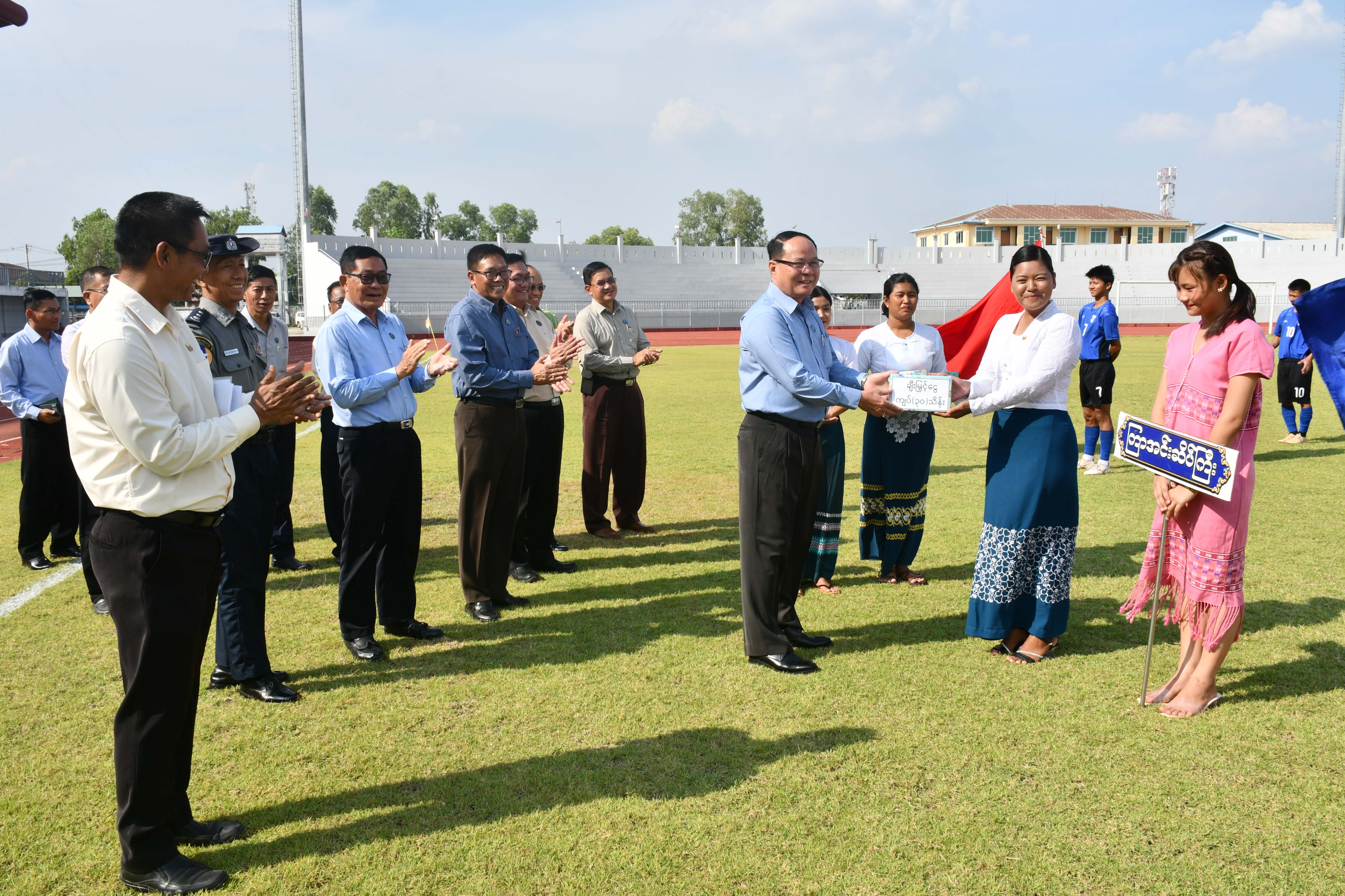 ထို့နောက် ပြိုင်ပွဲဝင်အားကစားအသင်း(၇)သင်း အားကစားသမား ၁၂၆ ဦးဝင်ရောက်ယှဉ်ပြိုင်ကြပြီး အားကစား သစ္စာအဓိဌာန်ရွတ်ဆိုကြကာ ပြည်နယ်ဝန်ကြီးချုပ်၊ ပြည်နယ်လွှတ်တော်ဥက္ကဋ္ဌ၊ ပြည်နယ်တရားလွှတ်တော်တရားသူကြီး ချုပ်၊ ပြည်နယ်ဝန်ကြီးများက ပြိုင်ပွဲဝင်အားကစားသမားများအား လိုက်လံနှုတ်ဆက်အားပေးကာ ပြိုင်ပွဲဝင်ဘောလုံး အသင်း တစ်သင်းလျှင် ငွေကျပ် (၃၀)သိန်းစီ ချီးမြှင့်ပေးအပ်သည်။