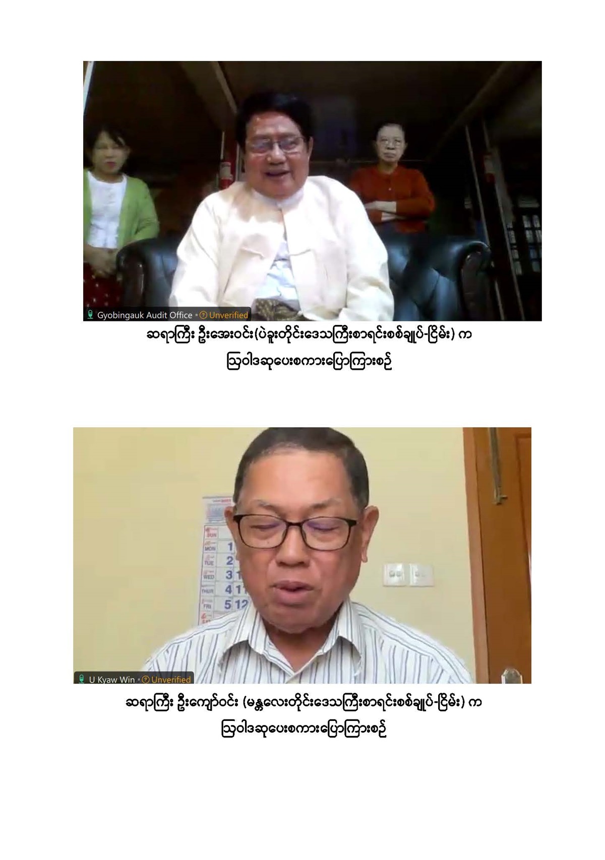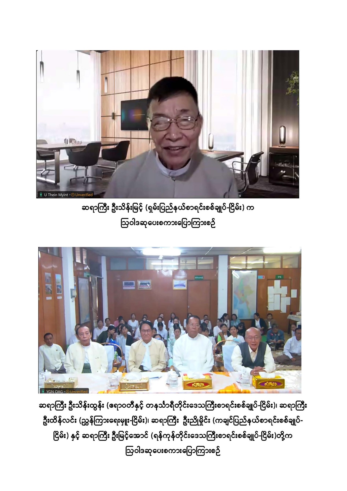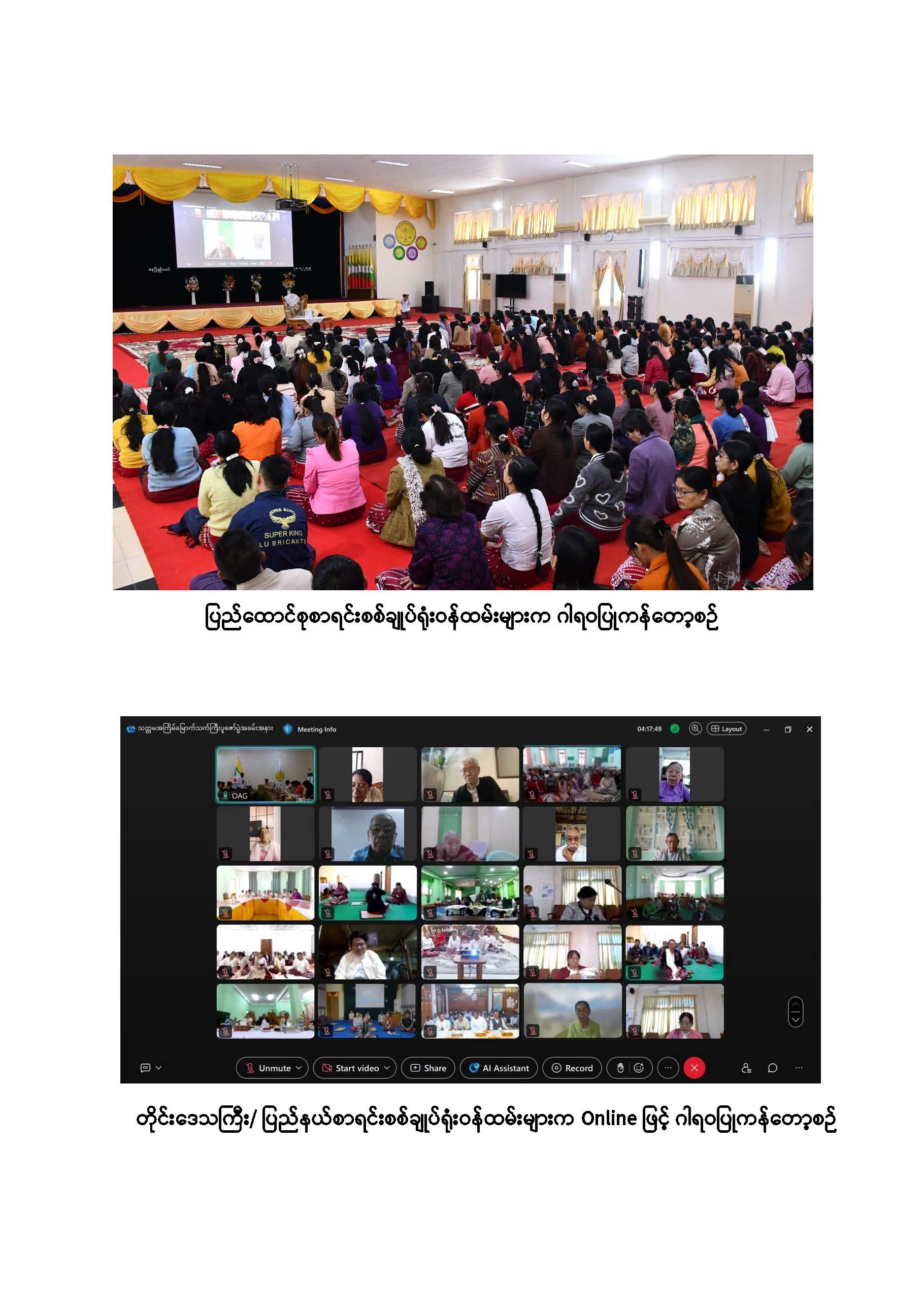 ပြည်ထောင်စုစာရင်းစစ်ချုပ်ရုံးမှ ကြီးမှူးကျင်းပသော “အငြိမ်းစား ပြည်ထောင်စုစာရင်း စစ်ချုပ်များနှင့် တာဝန်ထမ်းဆောင်ခဲ့ကြသည့် တိုင်းဒေသကြီး/ ပြည်နယ်စာရင်းစစ်ချုပ်များ၊ ယခင်စာရင်းစစ်ရုံးအဆက်ဆက်တွင် တာဝန်ထမ်းဆောင်ခဲ့ကြသည့် ရုံးအကြီးအကဲများ၊ အသက် (၇၅) နှစ်နှင့်အထက် (ဒုတိယညွှန်ကြားရေးမှူးနှင့်အထက်) သက်ကြီးဝါကြီးဆရာ သမားများအား ပူဇော်ကန်တော့သည့်အခမ်းအနား”ကို ၂၀၂၅ ခုနှစ် ဒီဇင်ဘာလ ၃၀ ရက်နေ့ နံနက် ၉:၃၀ နာရီတွင် ပြည်ထောင်စုစာရင်းစစ်ချုပ်ရုံး၊ ပတ္တမြားခန်းမနှင့် နဝရတ်ခန်းမတို့၌ Hybrid စနစ်ဖြင့် ကျင်းပခဲ့သည်။