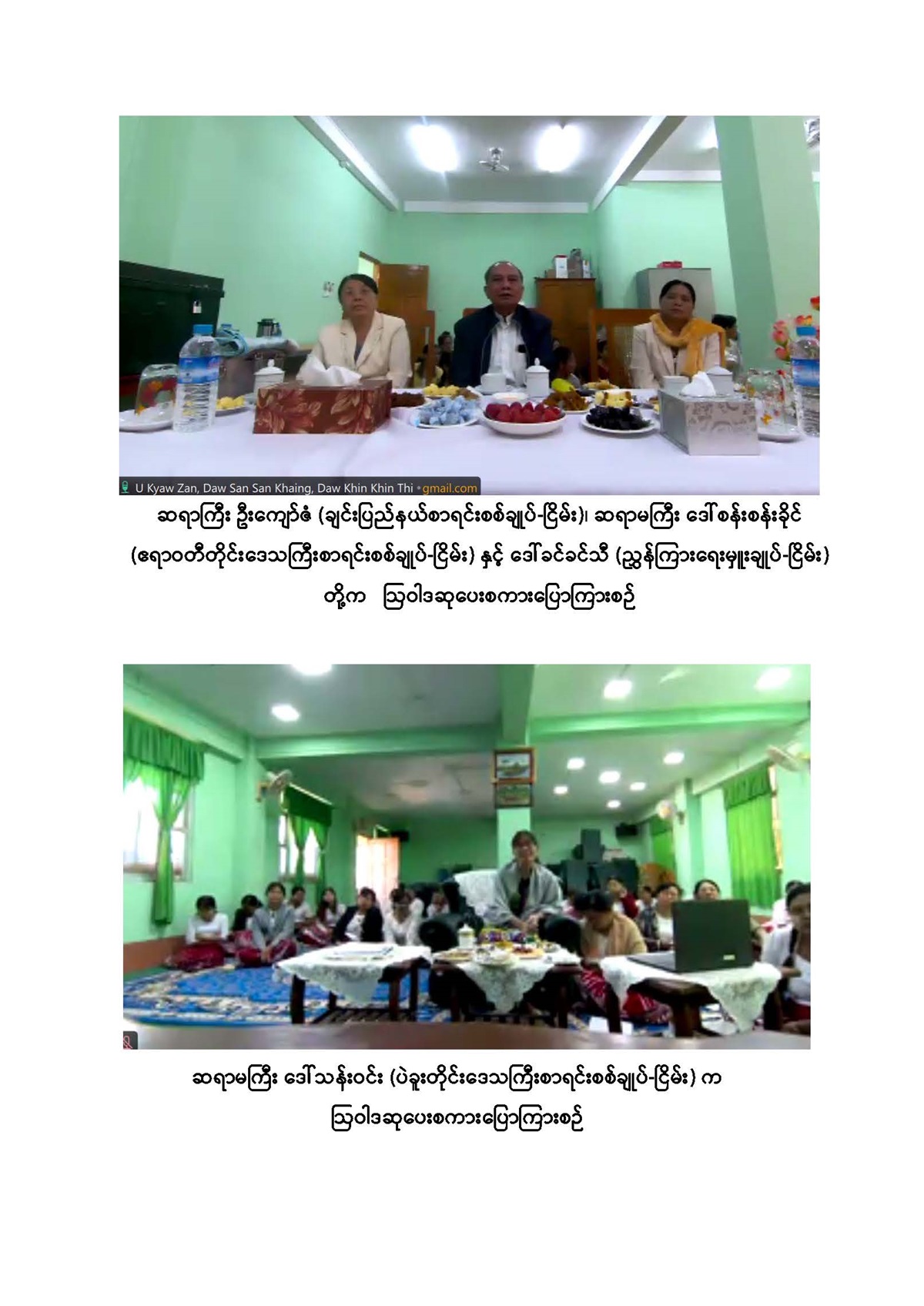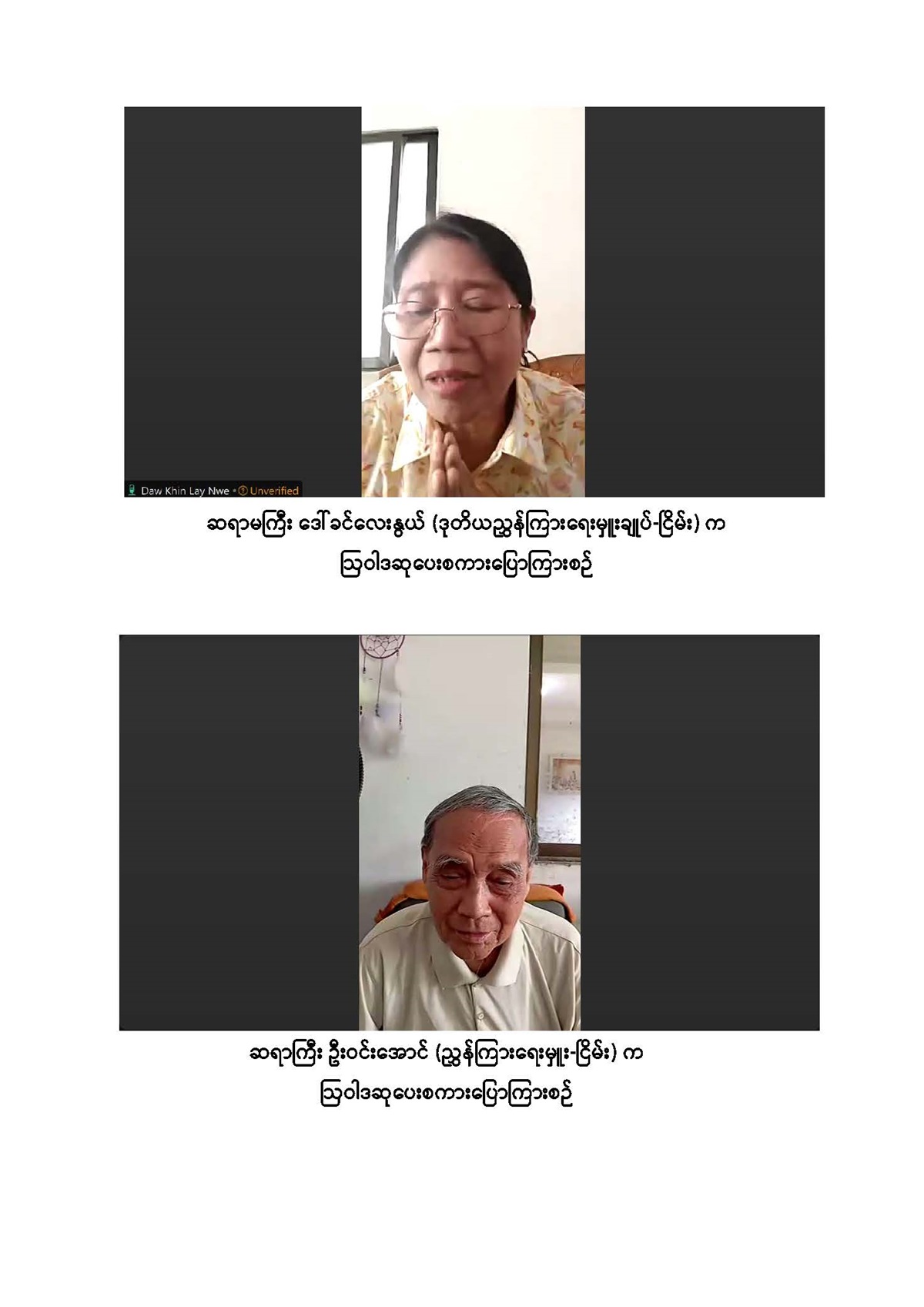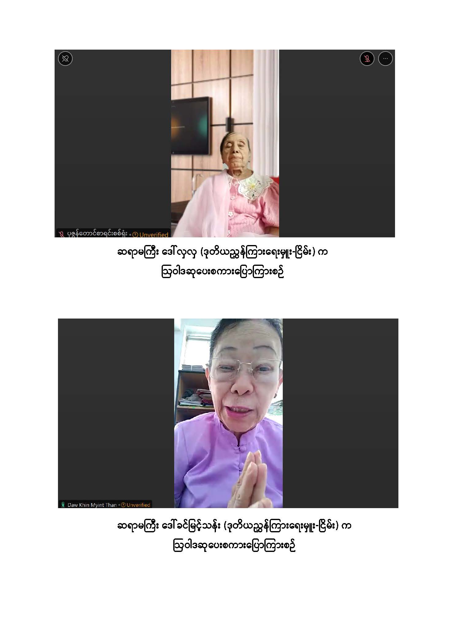 ဆက်လက်၍ ပြည်ထောင်စုစာရင်းစစ်ချုပ်ရုံးတွင် တာဝန်ထမ်းဆောင်ခဲ့သည့် အငြိမ်းစားဆရာကြီး၊ ဆရာမကြီးများအား ဝန်ထမ်းများမှ သွားရောက်ကန်တော့သည့် မှတ်တမ်းဓာတ်ပုံများကို Video Clip ဖြင့်ပြသခြင်း၊ ကန်တော့ခံဆရာကြီး၊ ဆရာမကြီးများ အား ပြည်ထောင်စုစာရင်းစစ်ချုပ်ရုံး နည်းပညာလေ့ကျင့်ရေးနှင့်ဖွံ့ဖြိုးရေးဦးစီးဌာနမှညွှန်ကြား ရေးမှူးချုပ် ဒေါ်သန္တာလေး၊ စီမံရေးရာဦးစီးဌာနမှ ညွှန်ကြားရေးမှူးချုပ် ဒေါ်ငြိမ်းငြိမ်းဝင်း၊ စစ်ဆေးရေးဦးစီးဌာနမှ ညွှန်ကြားရေးမှူးချုပ် ဒေါ်စီစီချိန်တို့က အသီးသီးဂါရဝပြုကျေးဇူးတင် စကားပြောကြားခဲ့သည်။
