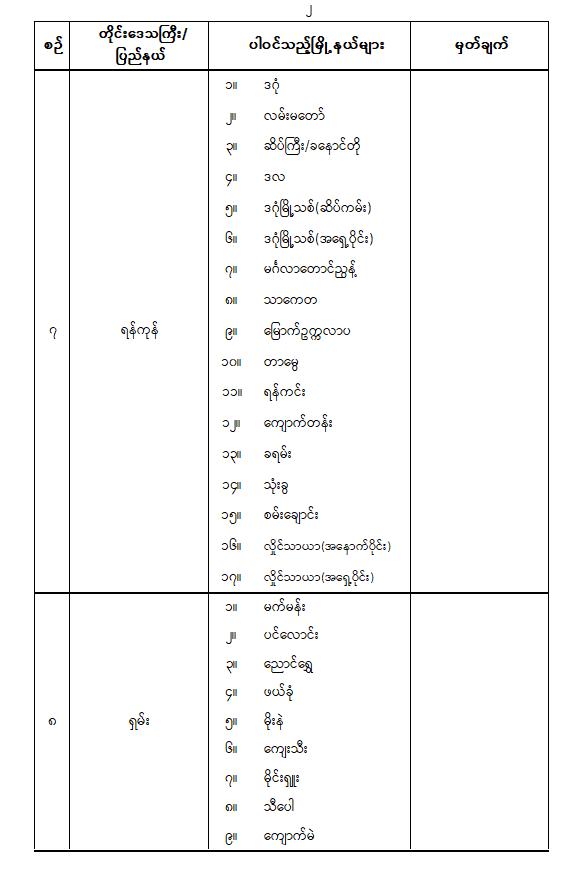 ပူးတွဲ။ အပိုင်း (၃)တွင် ပါဝင်သည့် မြို့နယ်များစာရင်း