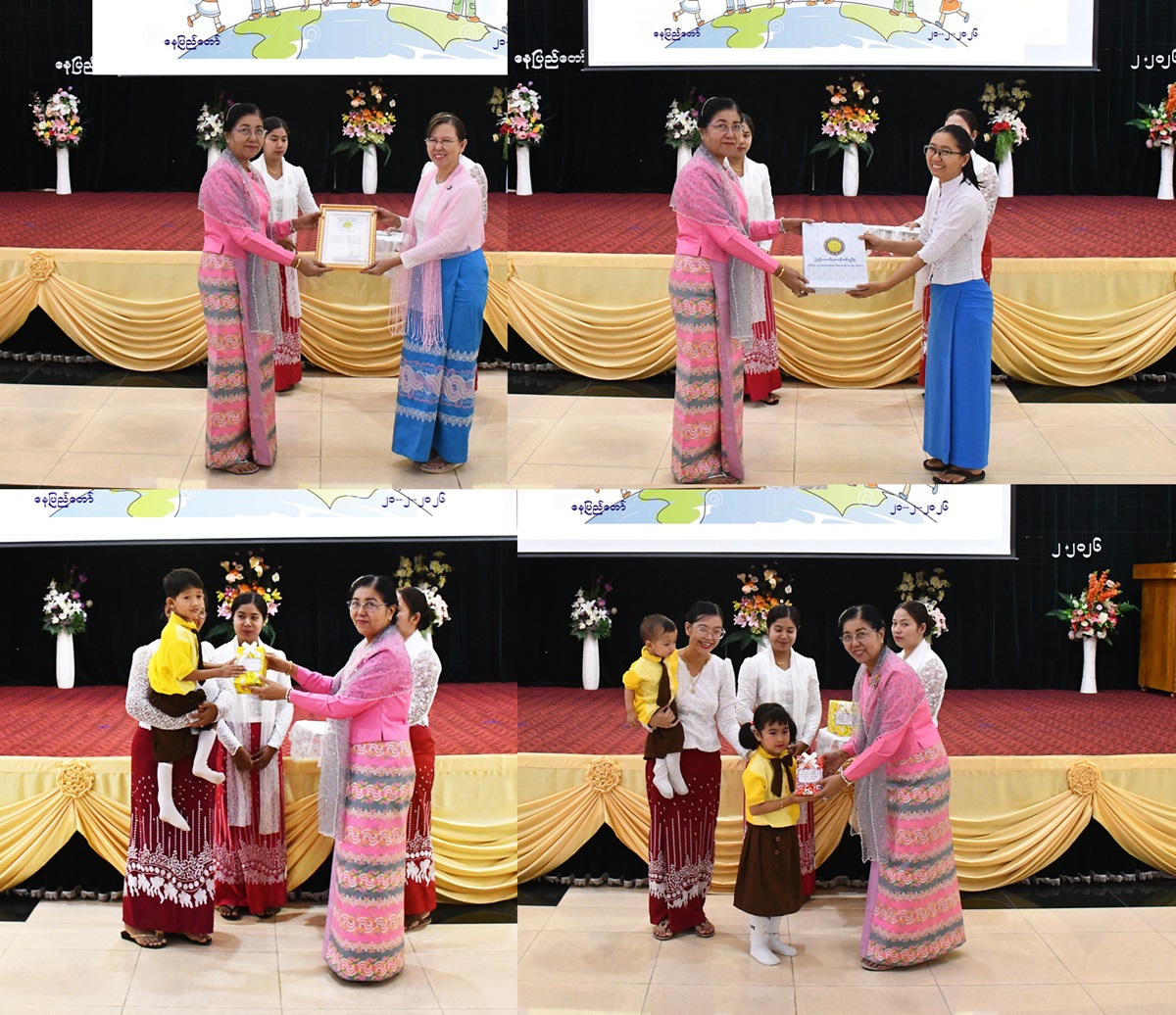 ယင်းနောက် ပြည်ထောင်စုစာရင်းစစ်ချုပ်၊ ဒုတိယစာရင်းစစ်ချုပ်တို့က ရင်သွေးငယ်များအား မေတ္တာလက်ဆောင်ပေးအပ်ခြင်းနှင့် အမြဲတမ်းအတွင်းဝန်က နေ့ကလေးထိန်းကျောင်း ဆရာမ(၃)ဦး အား မေတ္တာလက်ဆောင်ပေးအပ်ခြင်းများ ဆောင်ရွက်ခဲ့ကြသည်။
