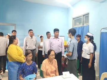 မွန်ပြည်နယ်၊ မော်လမြိုင်မြို့နယ်ပြည်သူ့ဆေးရုံကြီး၌ အငြိမ်းစားနိုင်ငံ့ဝန်ထမ်းများအား ကျန်းမာရေး စောင့်ရှောက်မှုပေးခြင်းနှင့် ထောက်ပံ့မှုပေးအပ်ခြင်း အခမ်းအနား ကျင်းပ